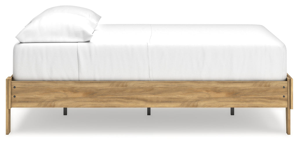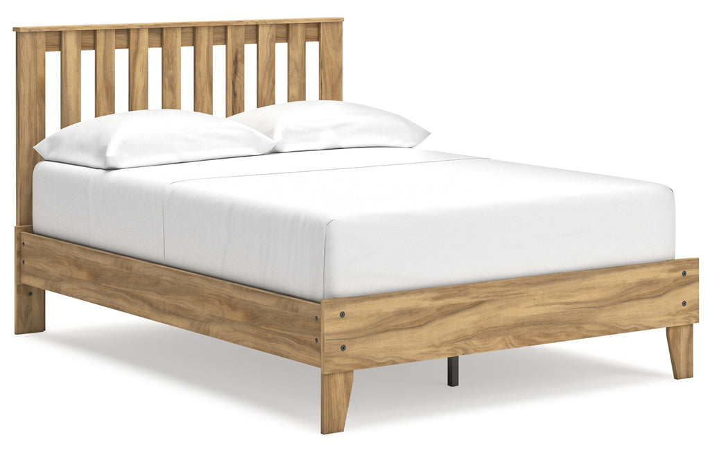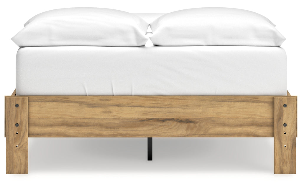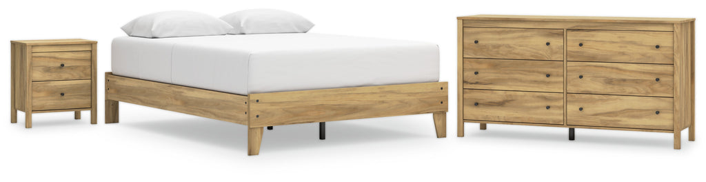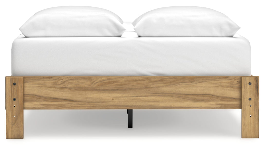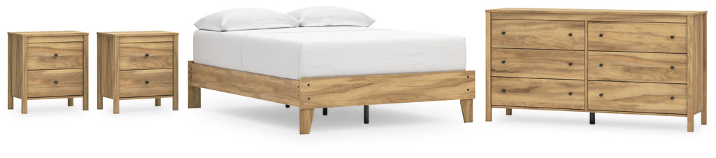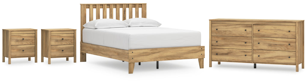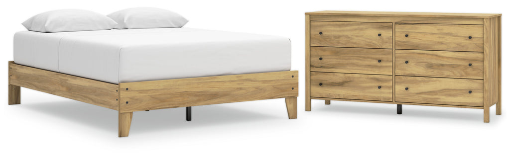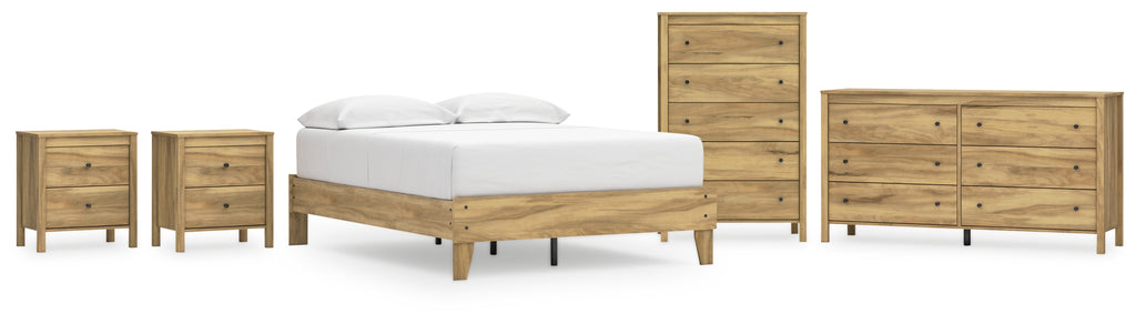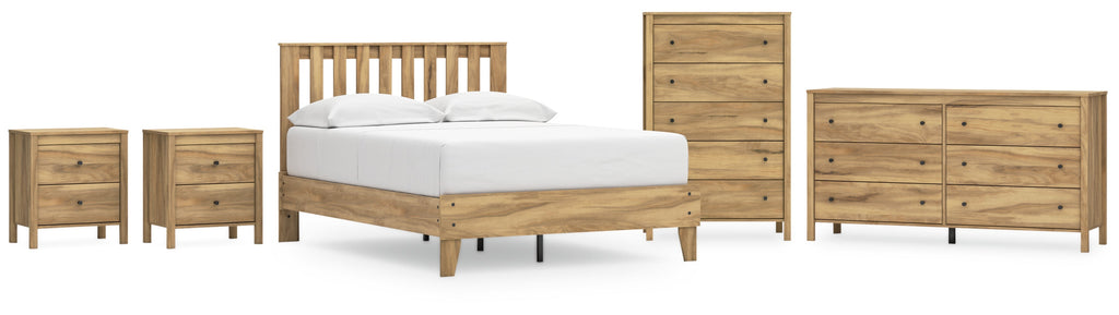 This package puts the dream of a casual bedroom retreat beautifully within budget. A warm light brown finish over replicated hickory grain exudes a homey vibe. This set is a simply relaxed way to achieve the look you want to wake up to every morning.