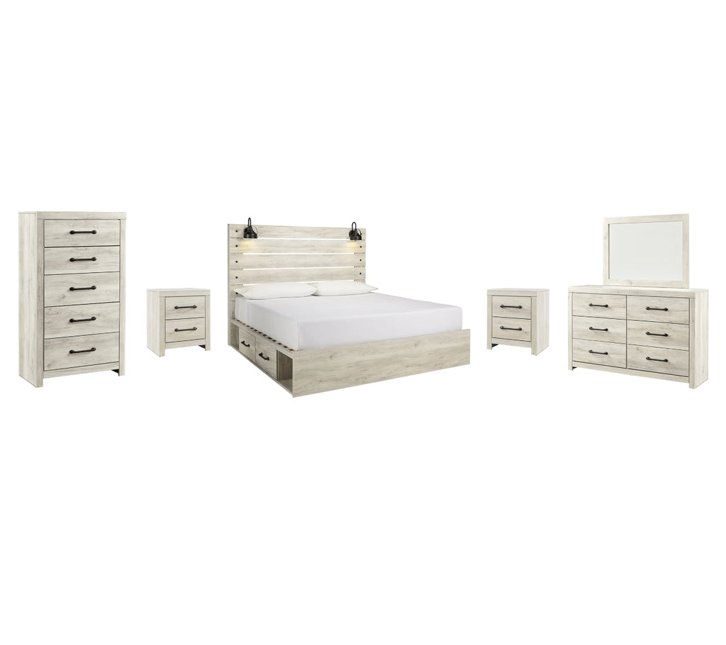 - Includes headboard, footboard, side storage, rails and slats