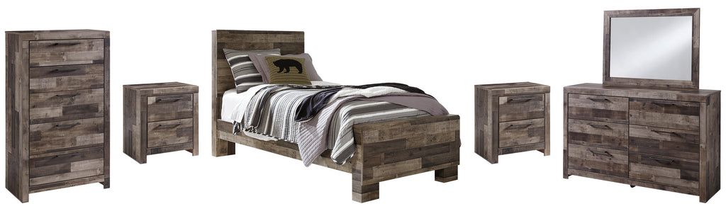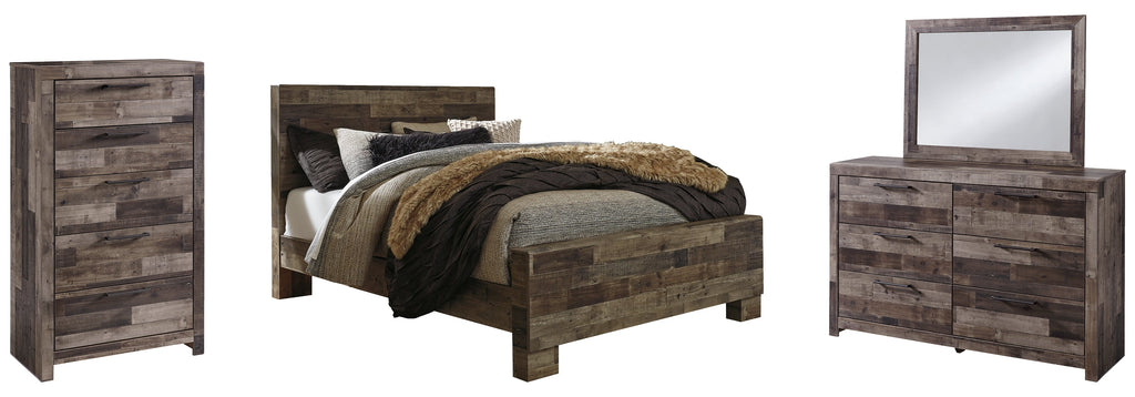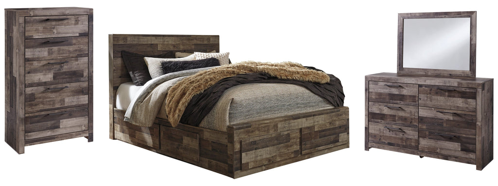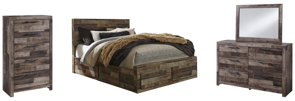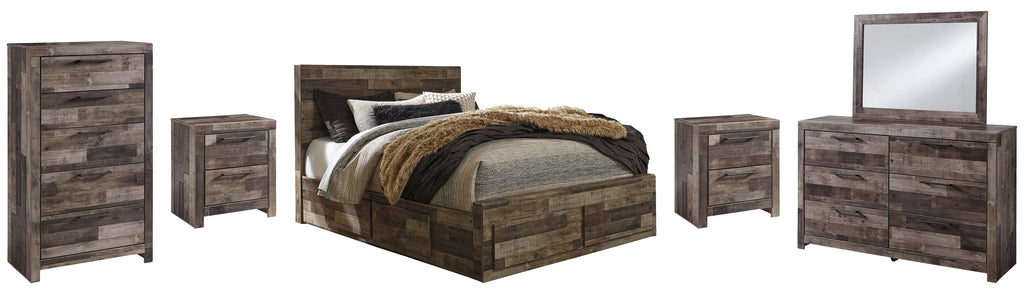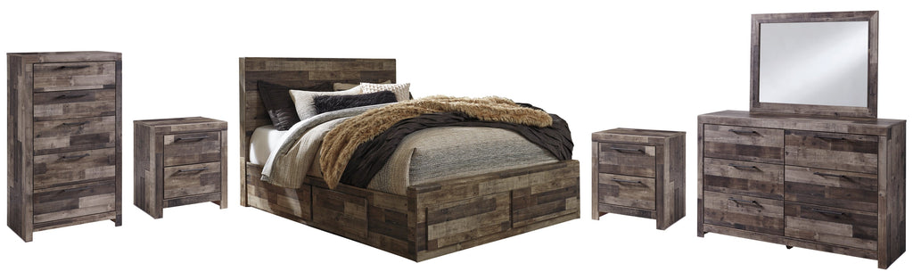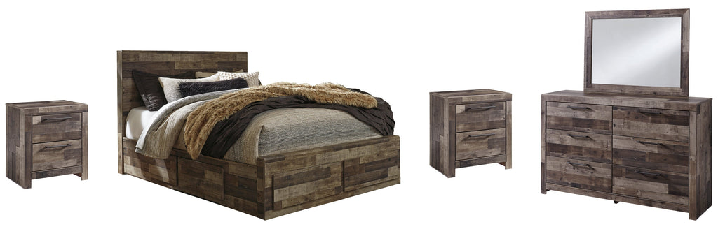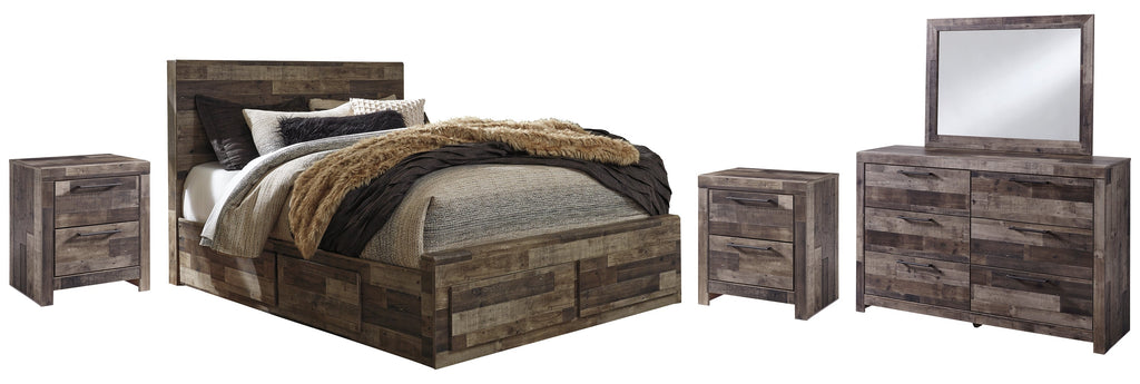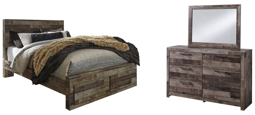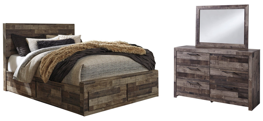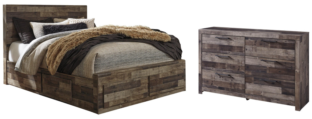 Derekson Queen Panel Bed with 2 Storage Drawers with Dresser