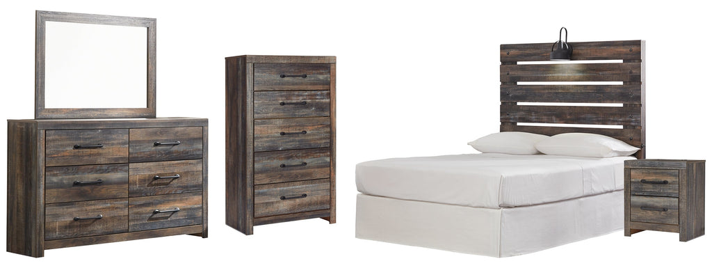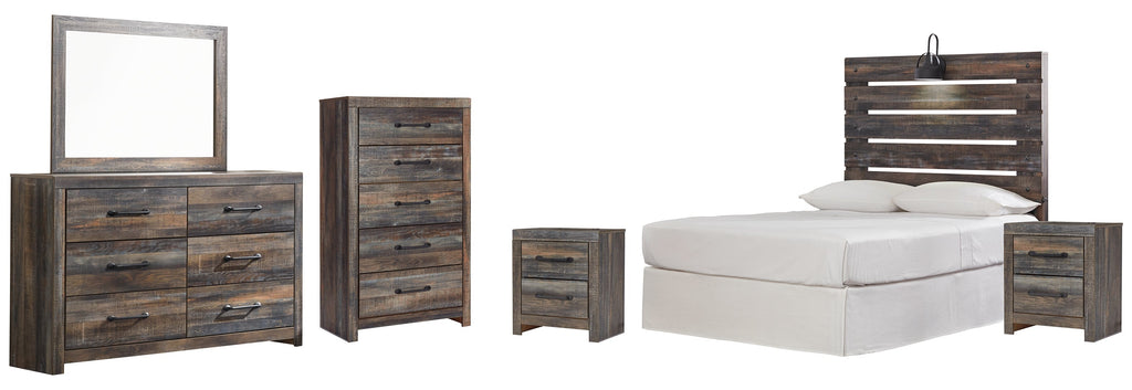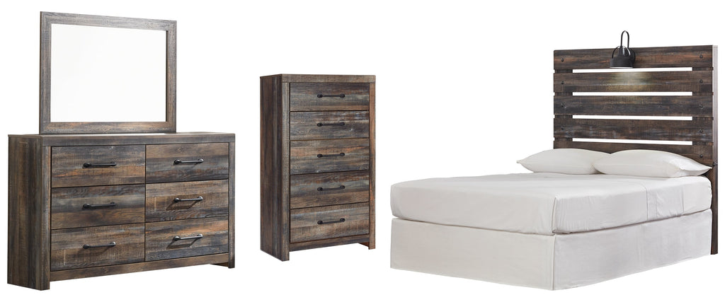 Drystan Full Panel Bed with Mirrored Dresser and 2 Nightstands