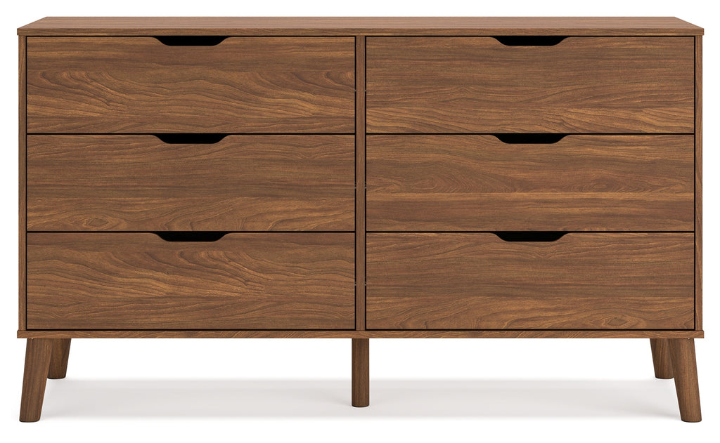 With sleek simplicity and a rich auburn hue, this bedroom package delivers cool, contemporary style with a nod to mid-century modern design. Drawers with a hardware-free aesthetic complete your restful retreat with exceptional form and function.