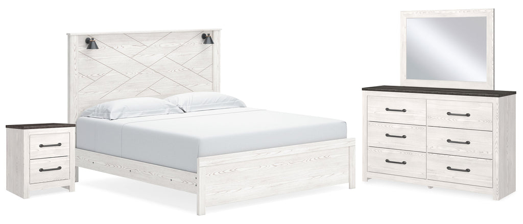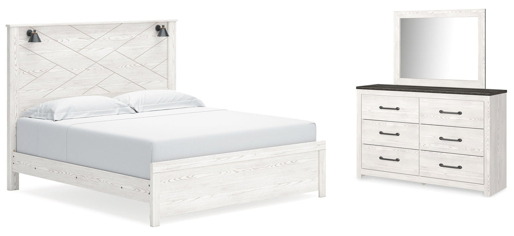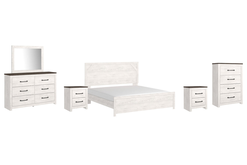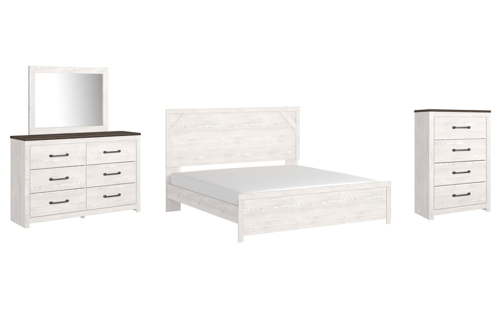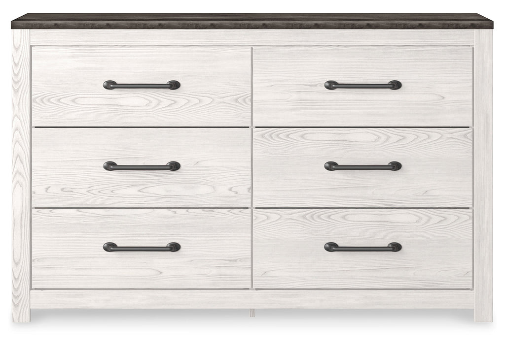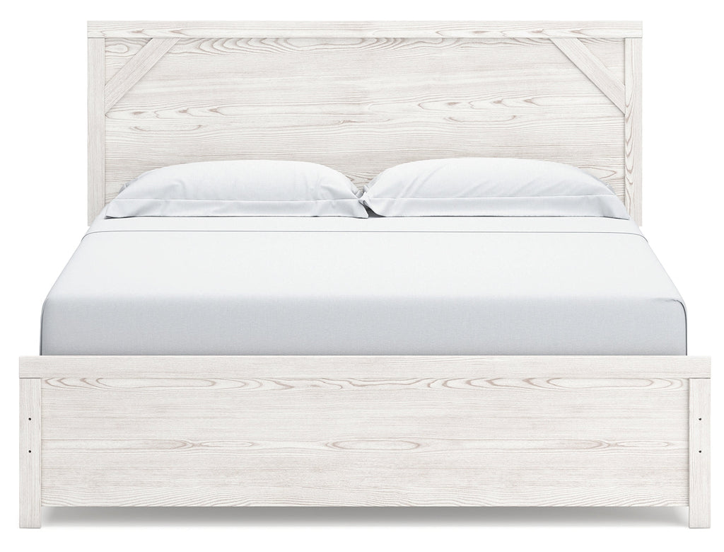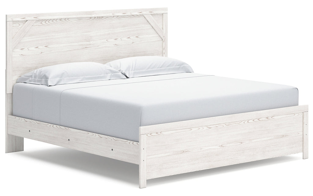 Cool, clean and casually modern. This bedroom package's wispy whitewash and gray finish sets the tone for your calming sanctuary. The bed’s framed elements and cross-brace accents add dimension and authenticity to its simply stunning profile. The dresser's smooth-gliding drawers neatly accommodate your wardrobe needs.
