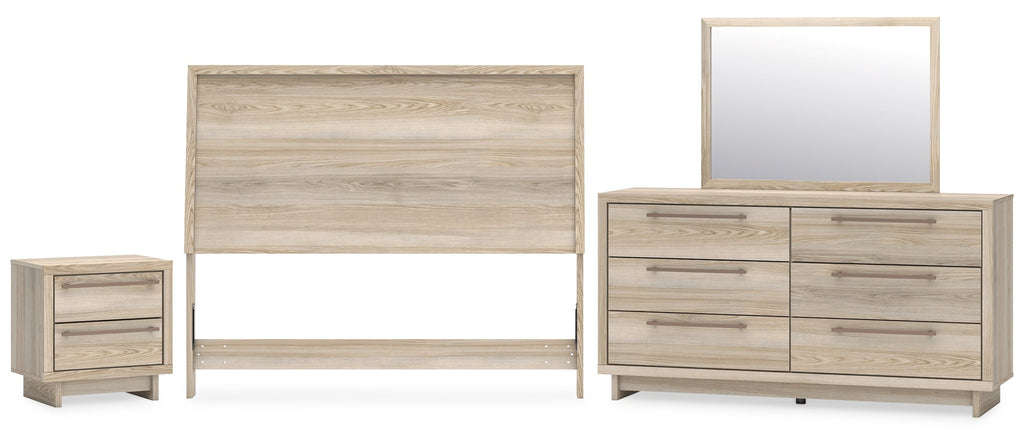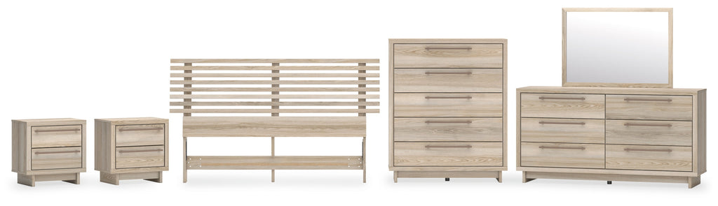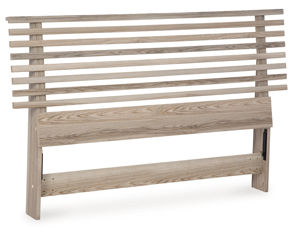 Modern meets neutral and sophisticated in the Hasbrick bedroom package. The natural finish and subtle replicated wood grain speak casual simplicity, creating a smart and stylish bedroom retreat. A refreshing take on style, indeed.