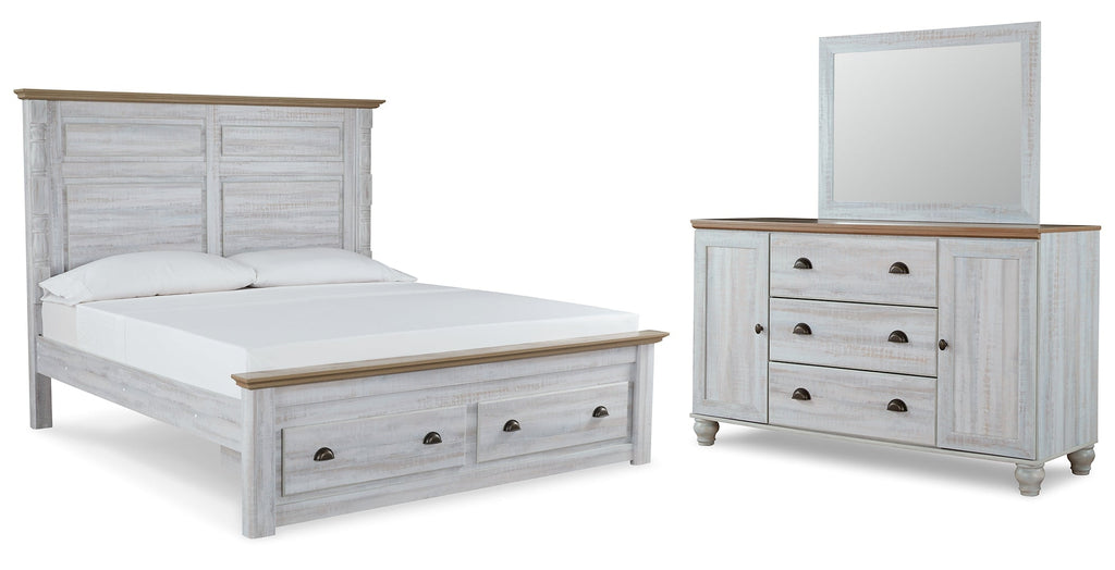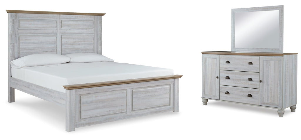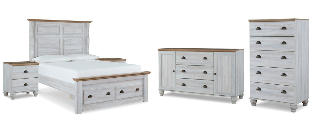 Beautifully simple yet rich with character, this bedroom package is a dream come true. It masters the art of simplicity with a charming two-tone look of weathered white complemented by a replicated oak grain. If farmhouse style is calling your name, answer with this timeless set.