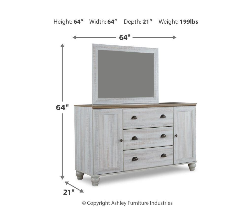 - Assembled dresser/mirror : 0" : 63.25" W x 21" D x 67.25" H
