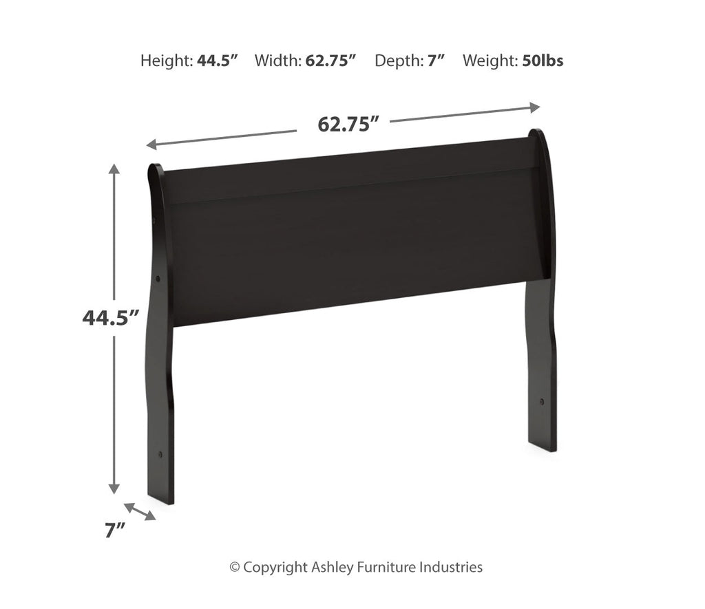 - Full sleigh headboard : 0" : 55.67" W x 7.09" D x 44.49" H