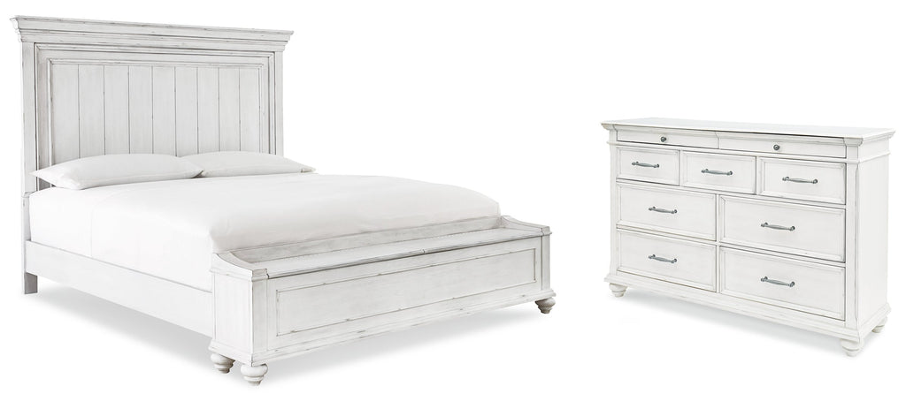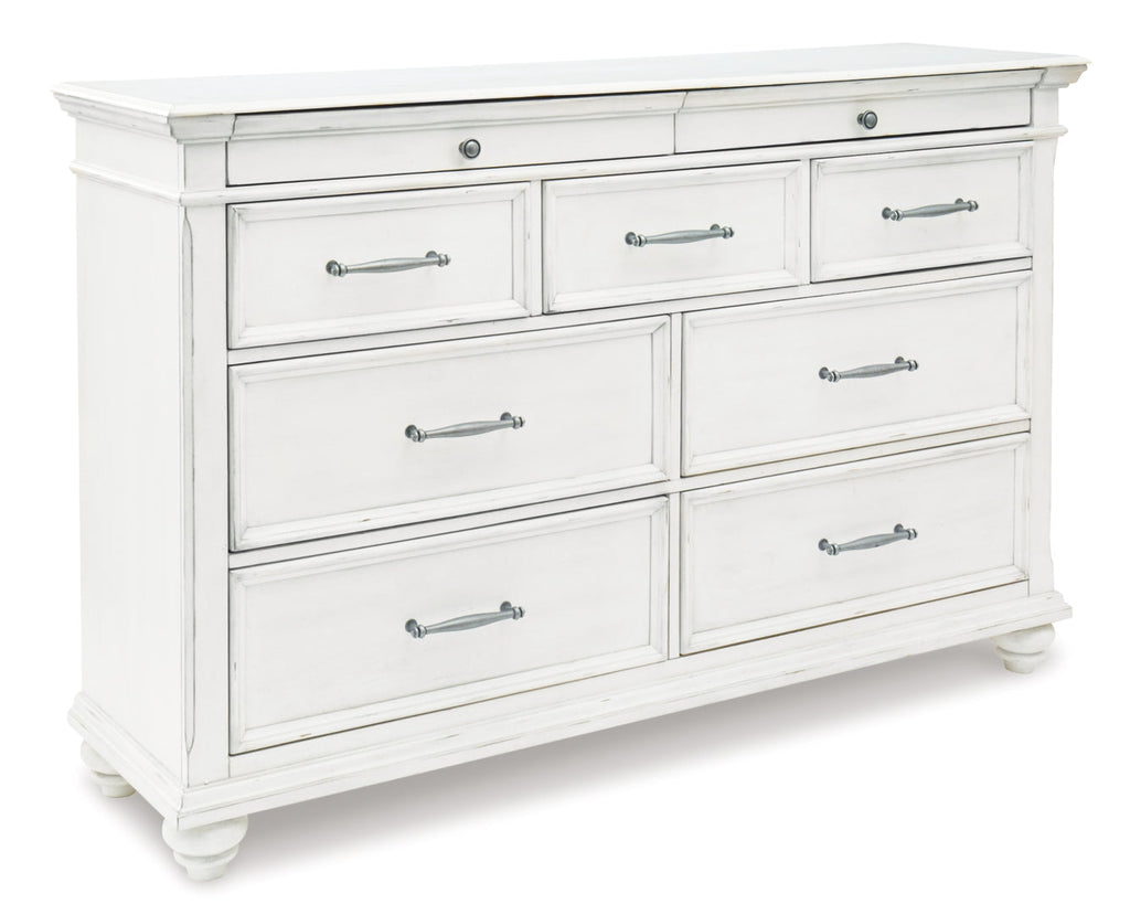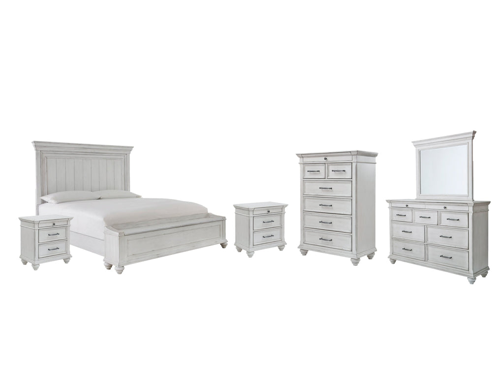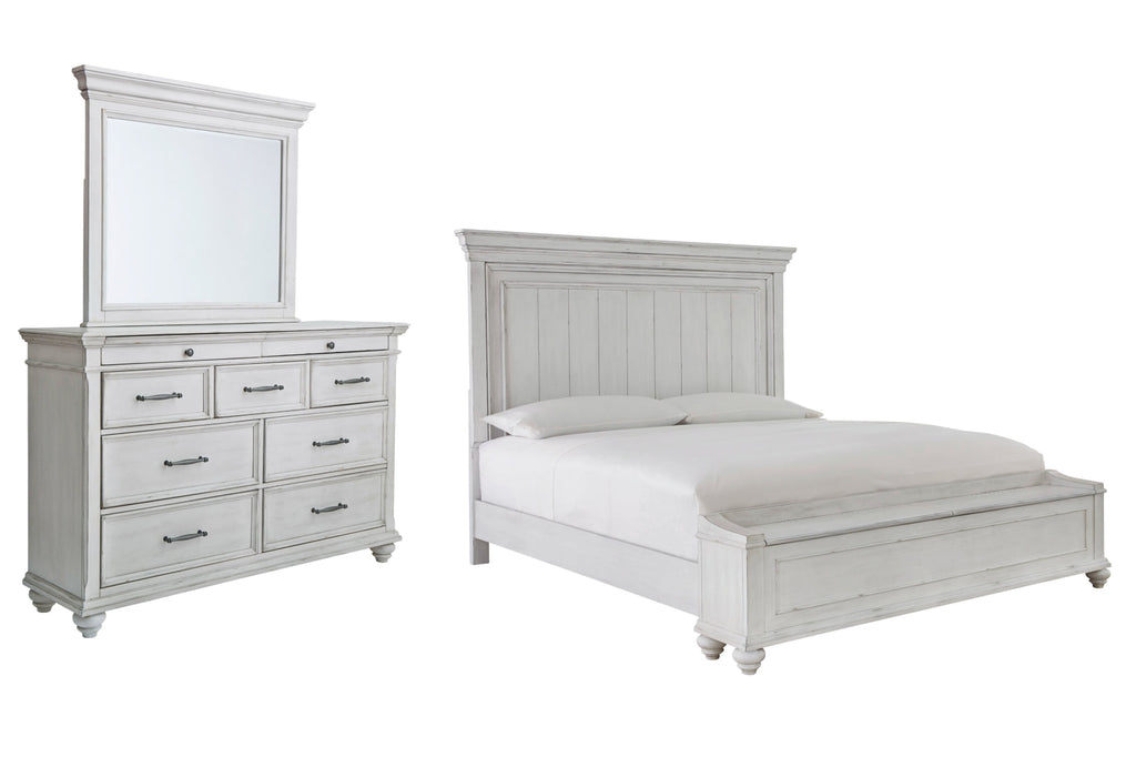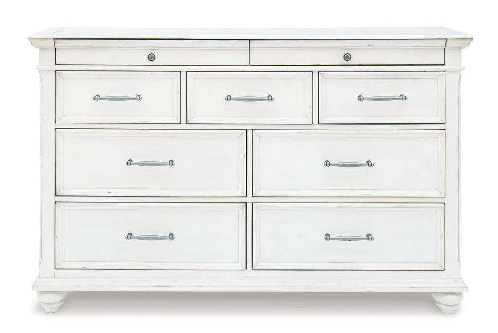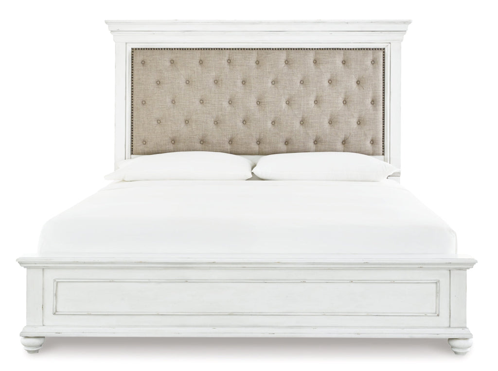 Give your retreat vintage charm with this bedroom set in a beautifully distressed whitewash finish. You'll love the headboard's grand style featuring a picture framed panel. Generously scaled moulding, framed drawer fronts and bun feet enhance the character of this bedroom set—evoking the feel of a quaint cottage escape.
