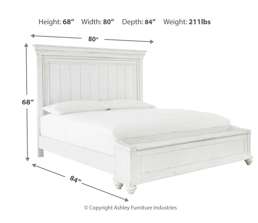 - King panel headboard : 0" : 85" W x 5" D x 68" H