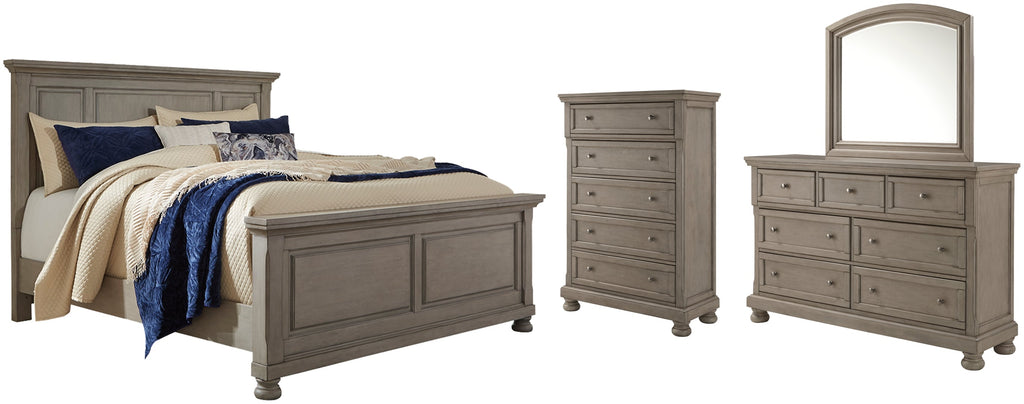 Satisfying your taste for tradition, this 4-piece bedroom set sports serene sophistication. Forever classic design details—inlaid panels, silvertone patina hardware and bun feet—are so easy to love. A burnished light gray finish elevates the look with modern sensibility.