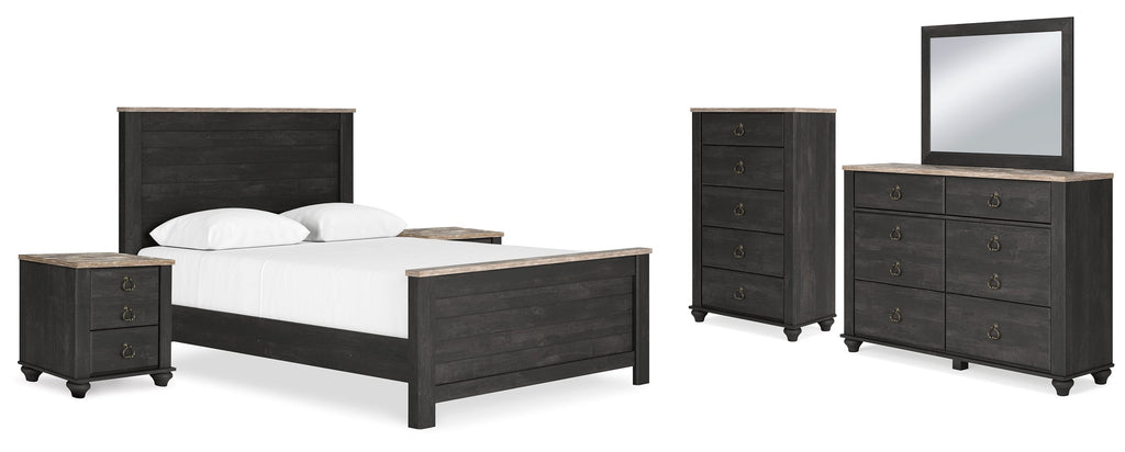 Charming French farmhouse aesthetics. Deep, industrial-inspired hues. This bedroom set balances beautiful simplicity with the luxurious details of yesteryear. The distinct two-tone finish is bold without sacrificing the set’s quaint character. And with its stunning scale, this set is sure to appeal to your unique eye for vintage-inspired design.