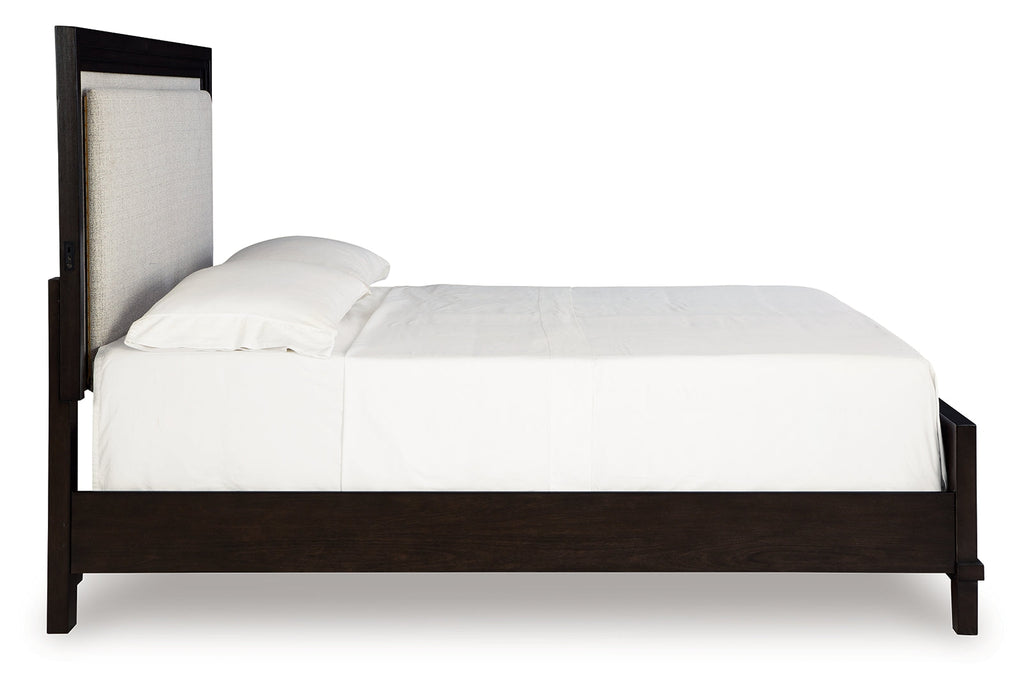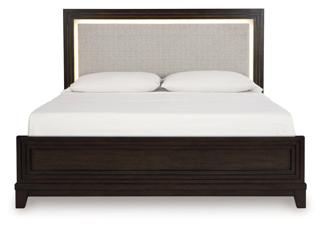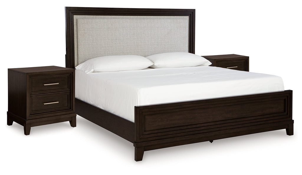 Neymorton California King Upholstered Panel Bed with 2 Nightstands