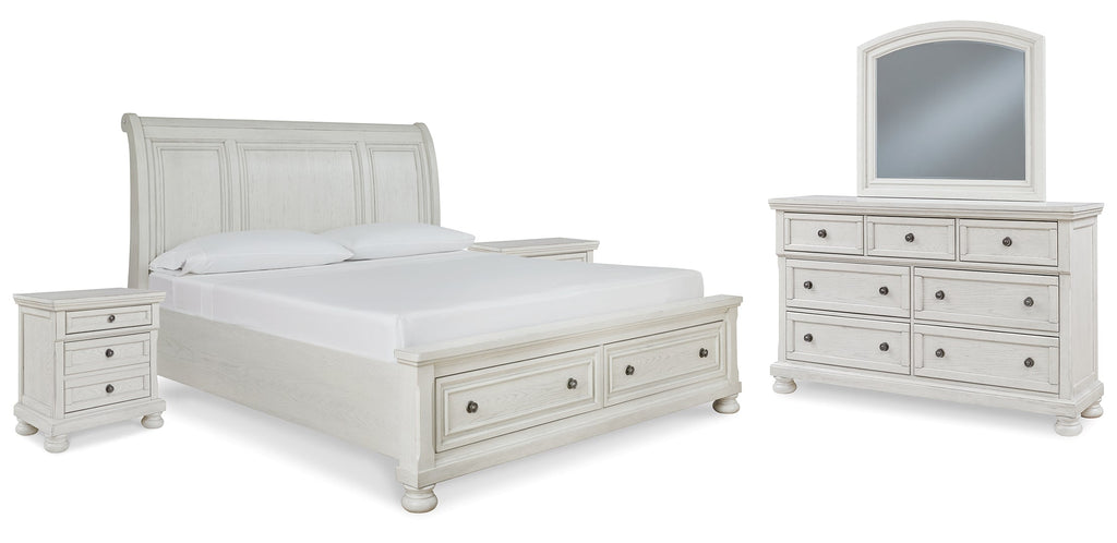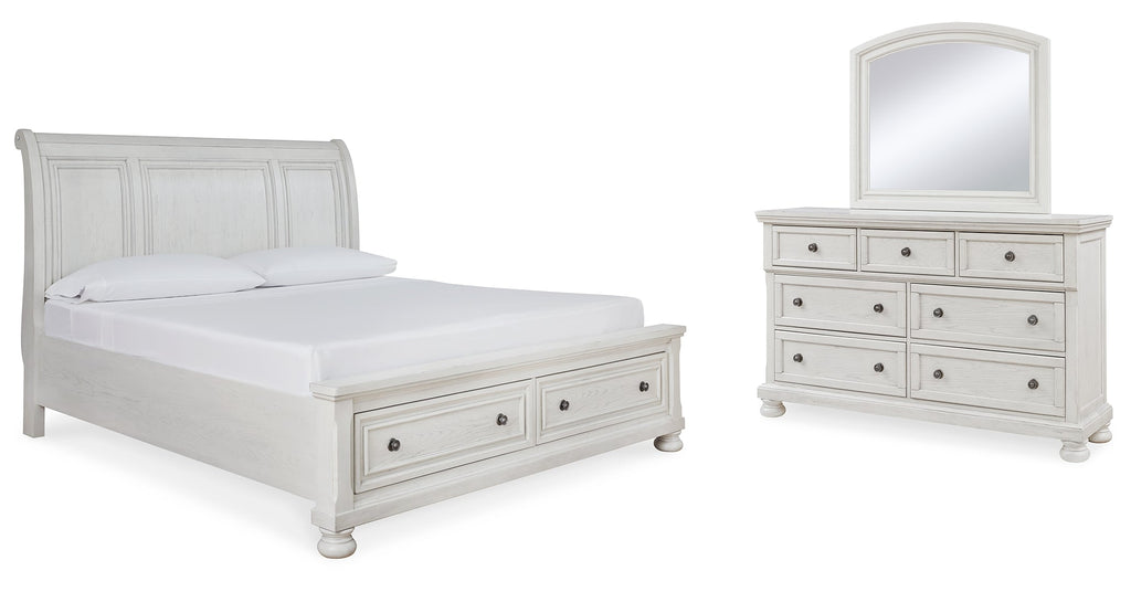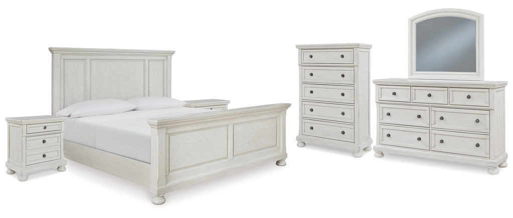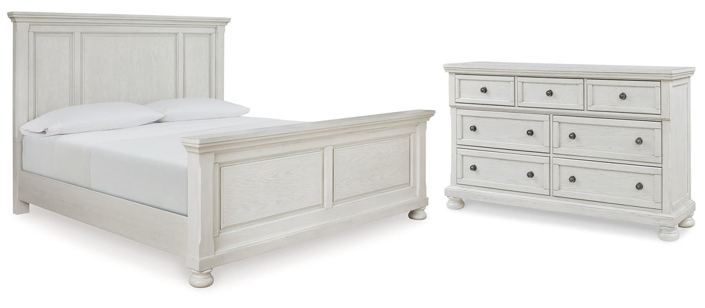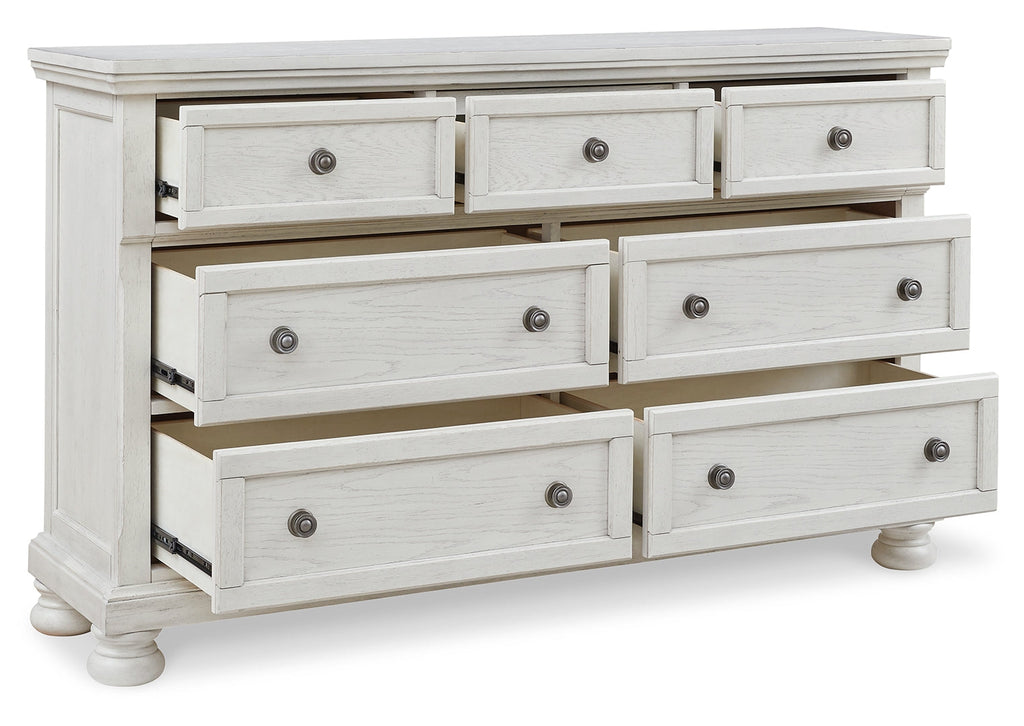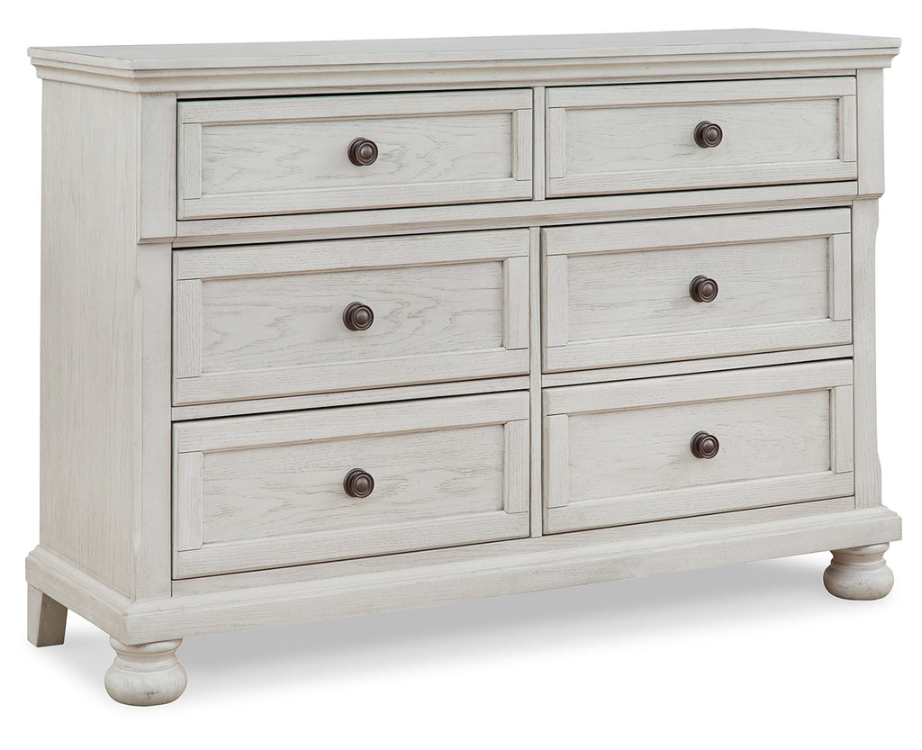 Elegant, timeless furnishings take your bedroom to the next level. Nothing does that better than this bedroom package. The antiqued white finish with a wonderful grain texture oozes sophistication, while dark bronze-tone hardware adds a sophisticated touch. Felt-finished top drawers and a hidden pull-out tray behind the top middle drawer of the dresser round out the set for the ultimate tasteful bedroom.