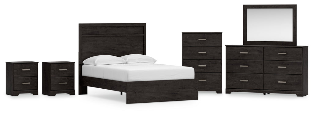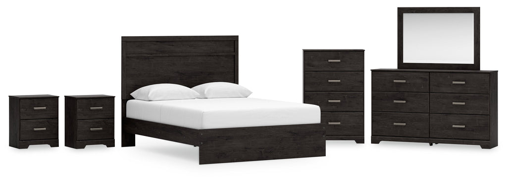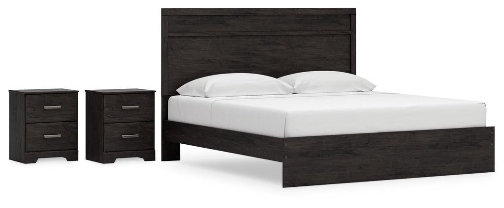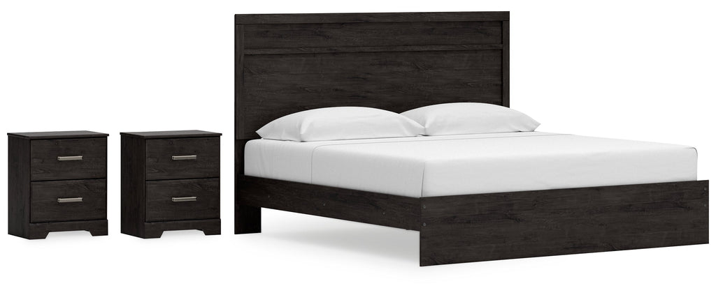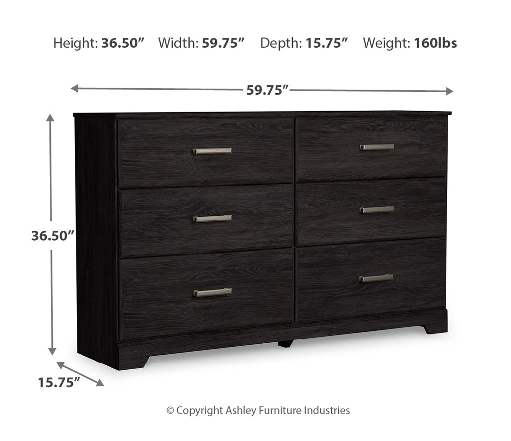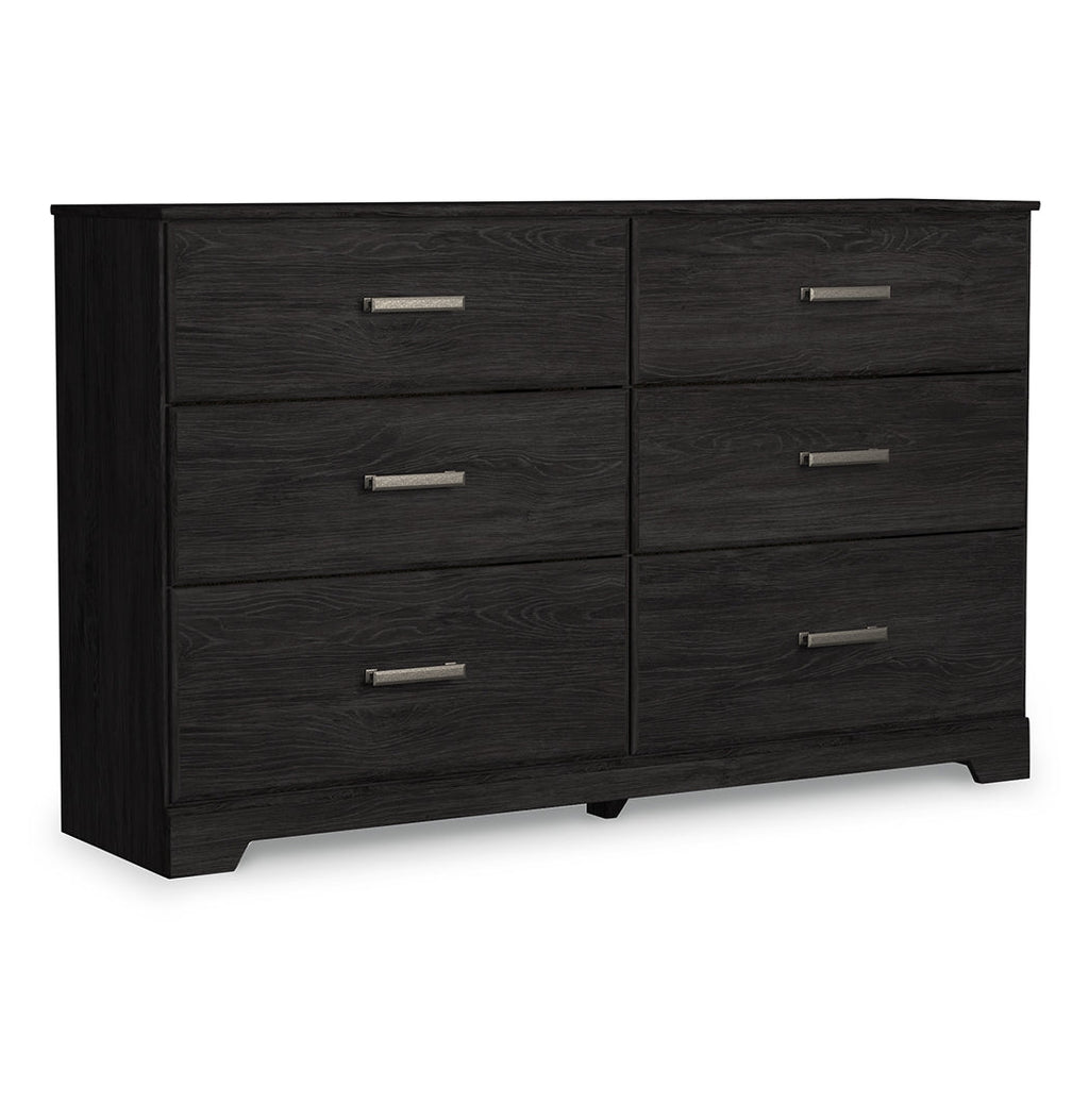 With its clean-lined look and modern attitude, this bedroom package is a fresh style awakening. A warm charcoal hue over replicated oak grain easily complements other furniture finishes. Smooth drawer fronts with antiqued pewter-tone handles complete the aesthetic.