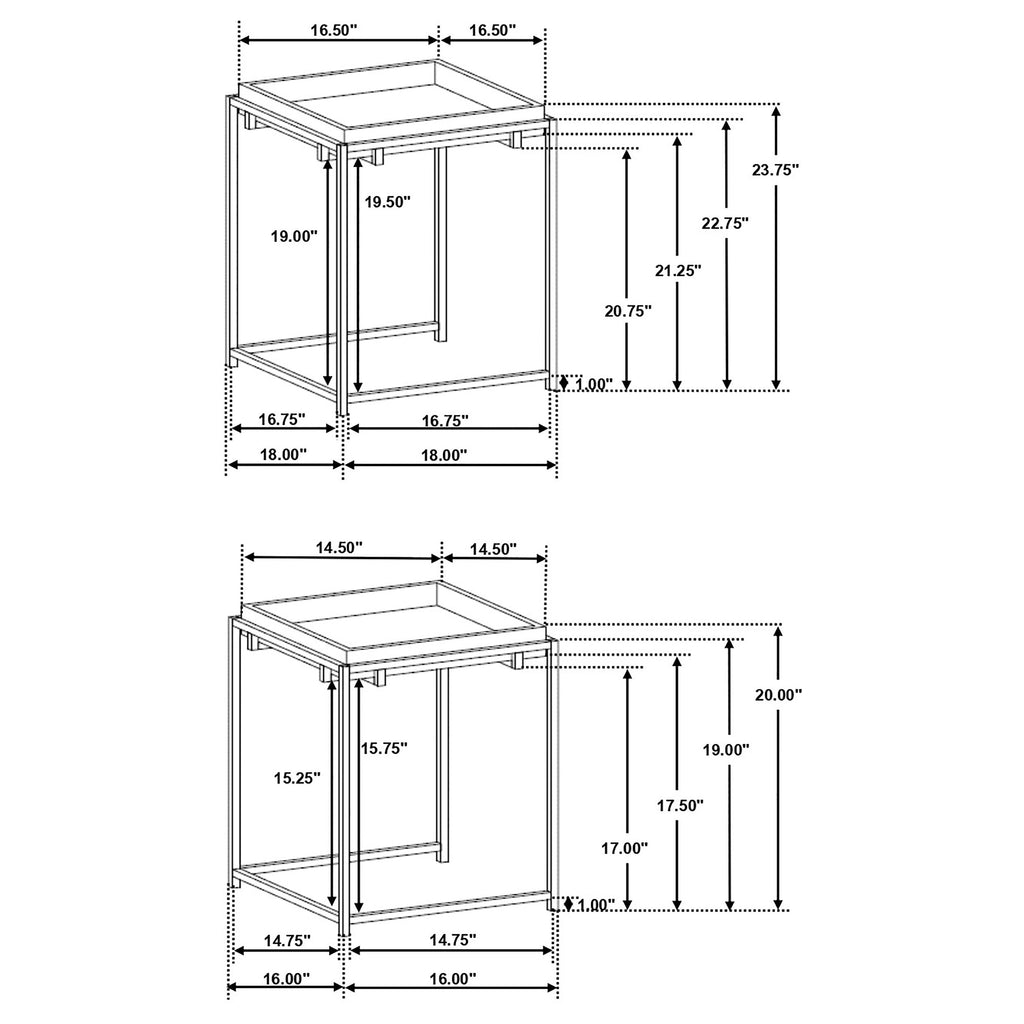 Retro-style two-piece set of nesting tables with gold finish iron open framing and tray-like tops