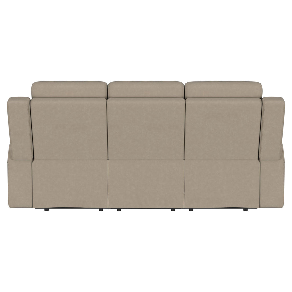 Spend the day looking forward to kicking back and relaxing on a modern reclining sofa. It boasts a pair of manual recliners, ideal for everything from movie marathons to enjoying game day with friends. Upholstery is suede-like with a matte look and feel, creating a soft neutral effect for your living room or den. The reclining sofa offers a modern look with smooth cushions and track arms, updating a classic recliner profile to create a piece that works in contemporary homes. Its refined look is enhanced with tufted accents that ensure comfort and support for the whole family.