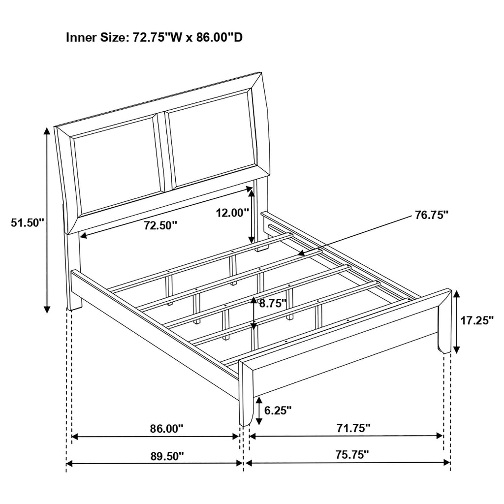 California King Bed: Width: 75.75, Depth: 92.50, Height: 51.75, Weight: 88.50