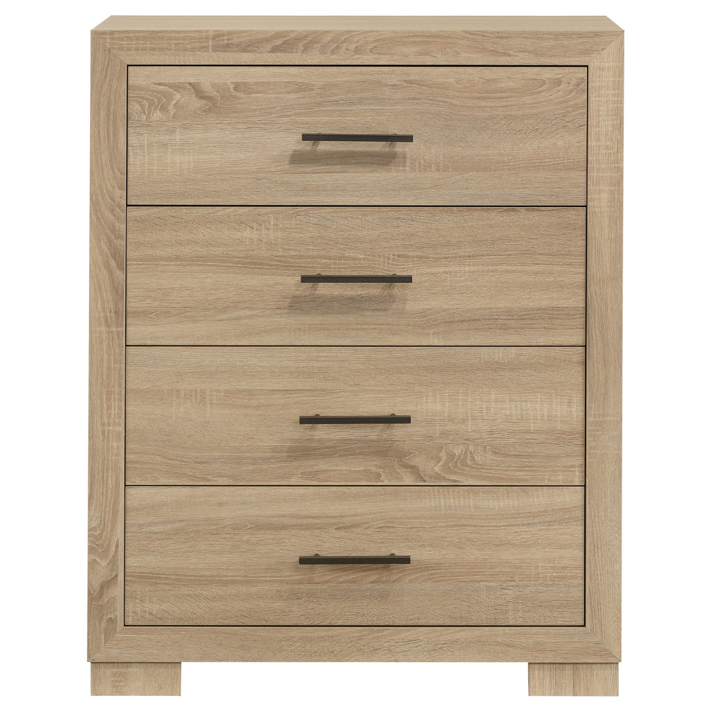 Four-drawer chest with clean lines and a light oak finish for soft contemporary styling