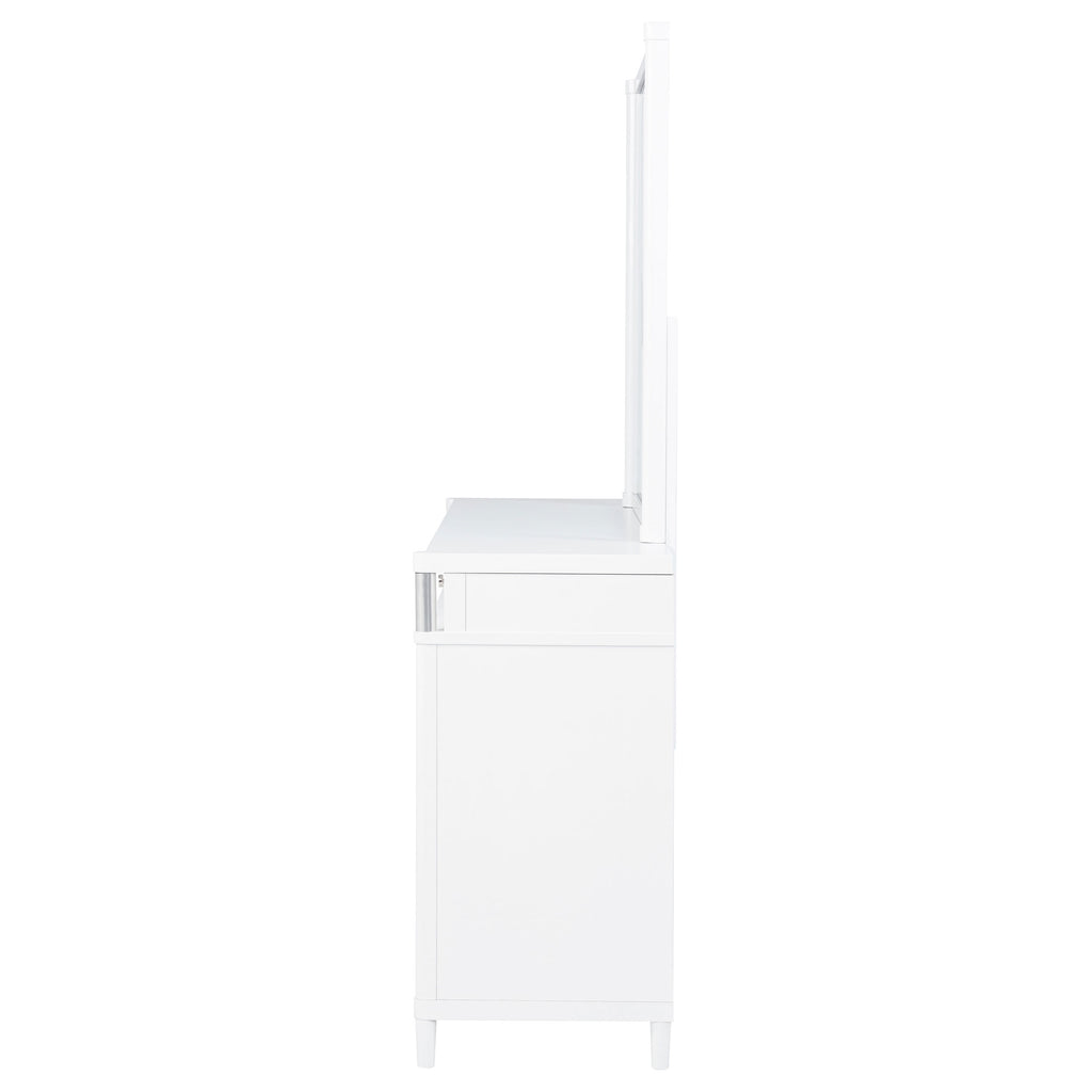 - Wood Finish: White - Hardware Finish: Brushed Nickel - Number of Pieces: 2 - Overall Weight Limit: 300 Lbs - Drawer Weight Limit: 60 Lbs - Tipover Restraint: Yes - Assembly Required: Yes - Materials: Asian Hardwood, Medium Density Fiberboard (Mdf), Mirror