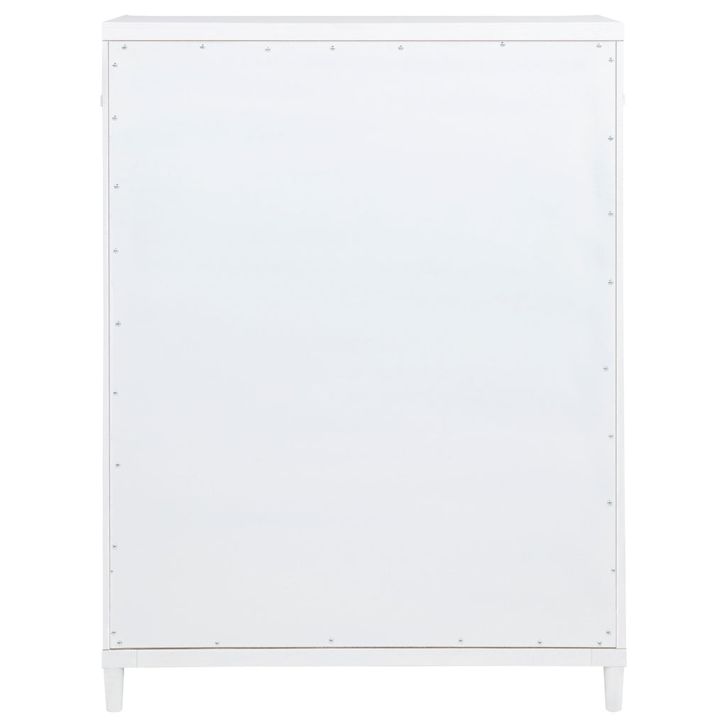 - Wood Finish: White - Hardware Finish: Brushed Nickel - Overall Weight Limit: 300 Lbs - Drawer Weight Limit: 60 Lbs - Tipover Restraint: Yes - Assembly Required: No - Materials: Asian Hardwood, Laminated Veneer Lumber (Lvl), Medium Density Fiberboard (Mdf)
