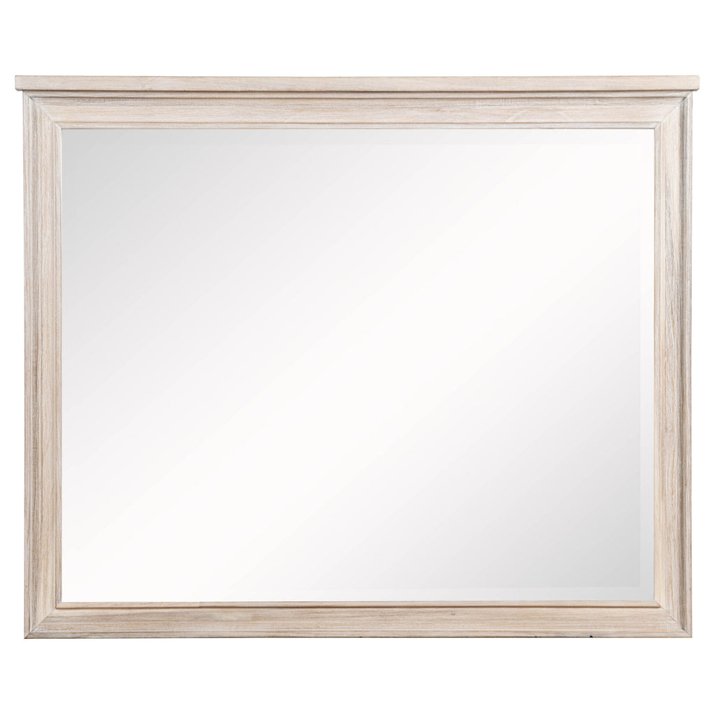 Framed with quiet elegance, this bedroom mirror captures the understated grace of the collection. Its rectangular silhouette is trimmed in washed oak with subtle molding, designed to reflect both light and the surrounding calm. Whether hung above a matching dresser or used alone, it adds depth and clarity with timeless simplicity.