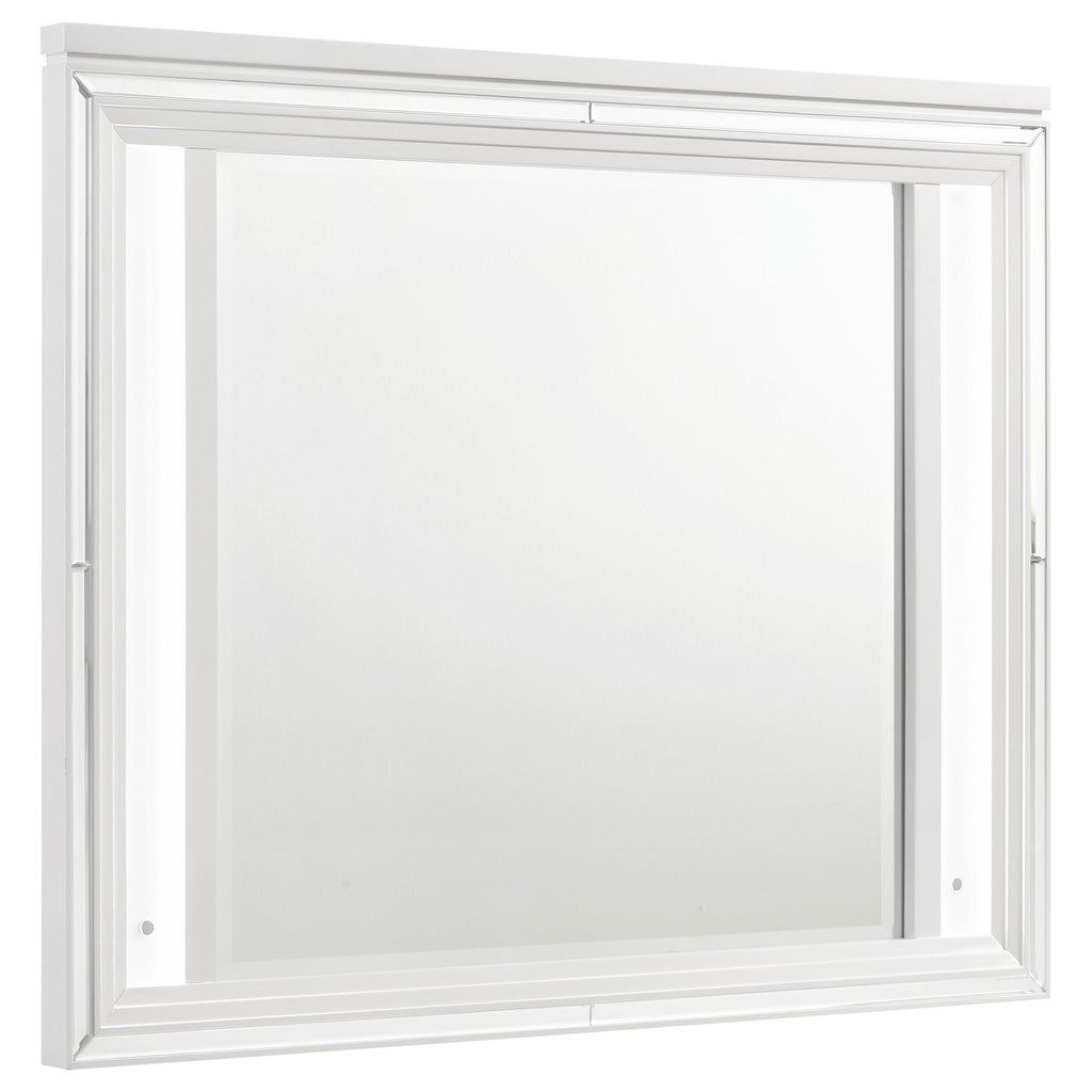 Complete your dresser with this elegant mirror, designed to enhance the overall look of your bedroom. The white finish and mirror framing perfectly complement the modern Italian design of the dresser. Featuring a touch LED light, this mirror adds a touch of sophistication and functionality to your space. Crafted from rubberwood, MDF, and mirror, this dresser mirror is the perfect finishing touch for your luxurious bedroom.