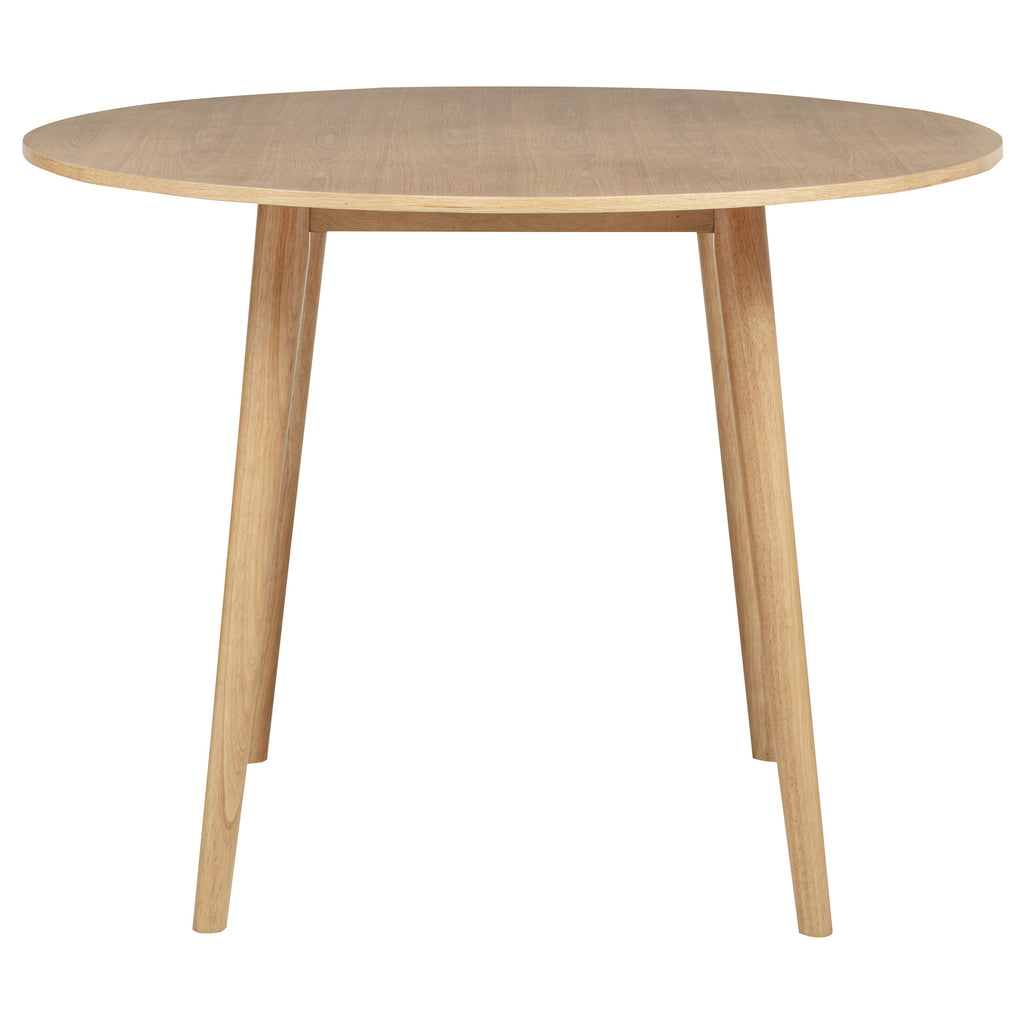 Elevated with charm and simplicity, this round counter height table brings mid-century warmth to casual dining. Its smooth circular top rests on tapered legs, offering a sculptural silhouette that feels both light and grounded. Crafted from solid rubberwood with ash veneer over engineered wood, the natural grain glows beneath a light ash finish. Perfect for kitchen islands, dining nooks, or relaxed gathering spaces.