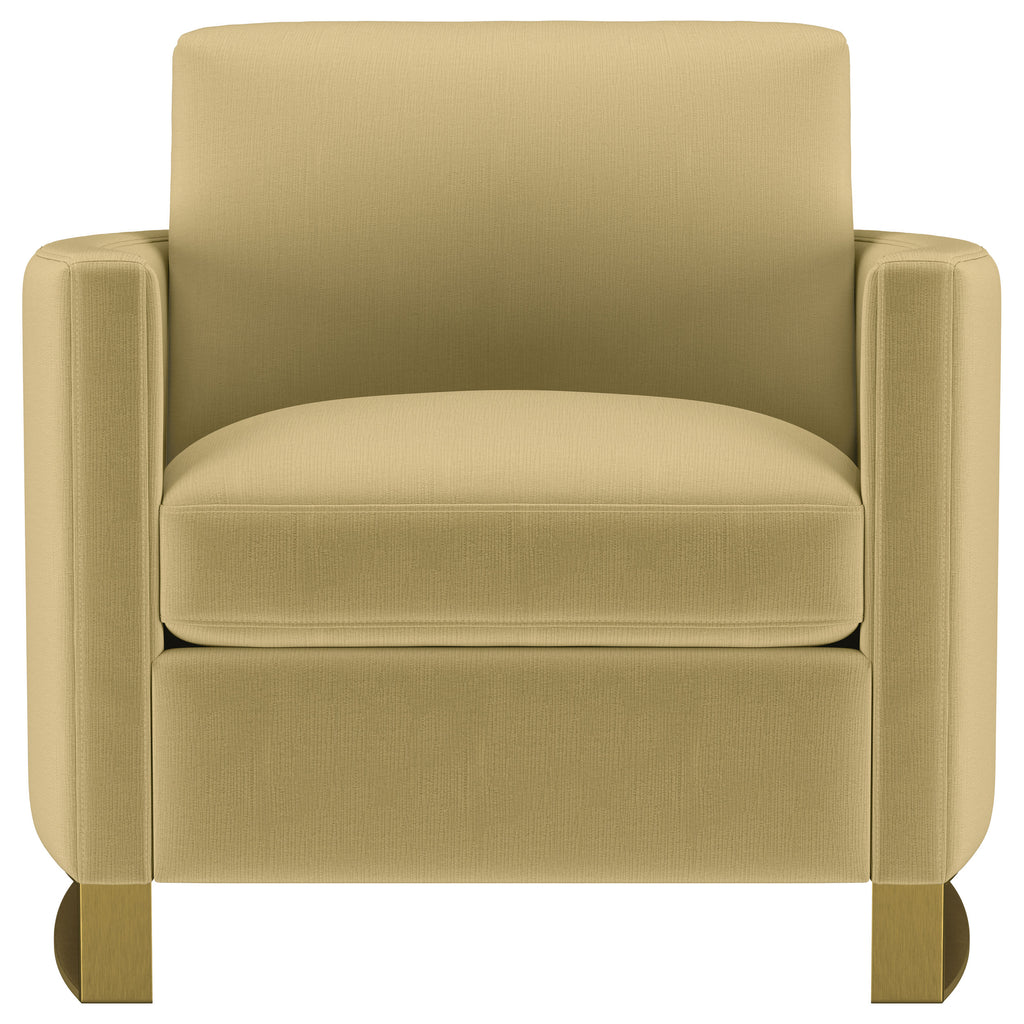 Indulge in opulent comfort with this textured velvet chair. Its reversible feather blend seat and back cushions, complemented by curved arms and gold stainless steel legs. Smooth upholstery and lustrous details blend simplicity with timeless splendor, making this piece a perfect focal point for refined interiors. With its inviting profile and graceful presence, it elevates both style and relaxation.