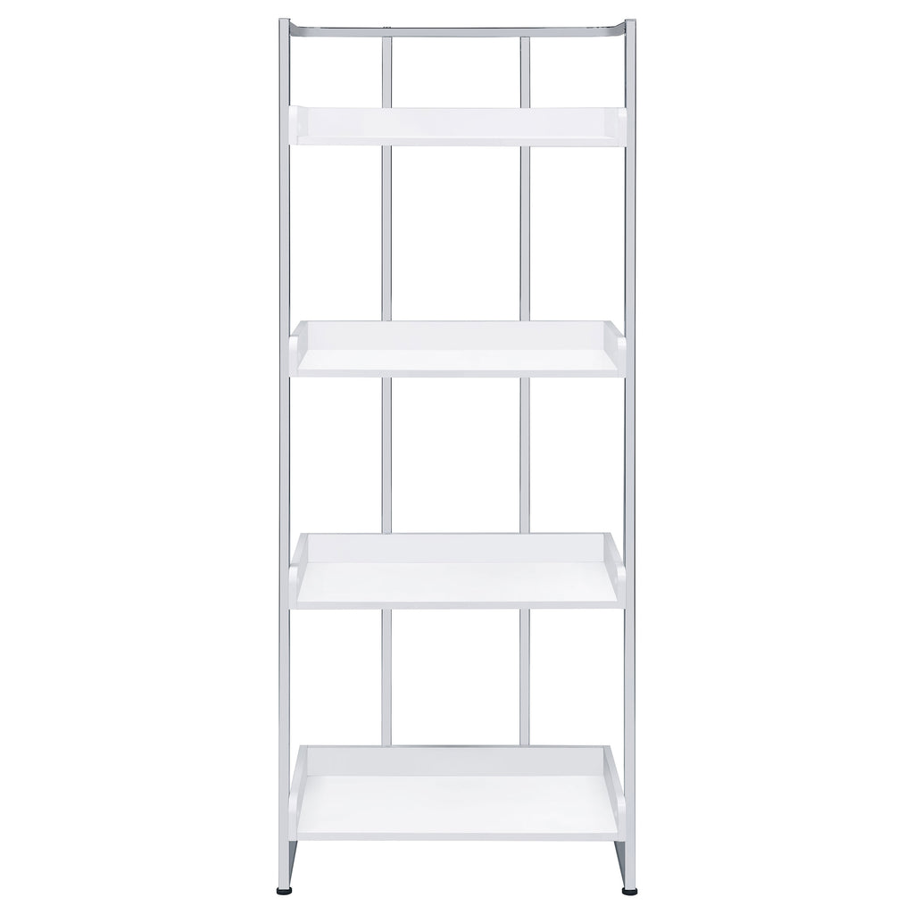 Contemporary four-shelf bookcase with rimmed trays and open back design
