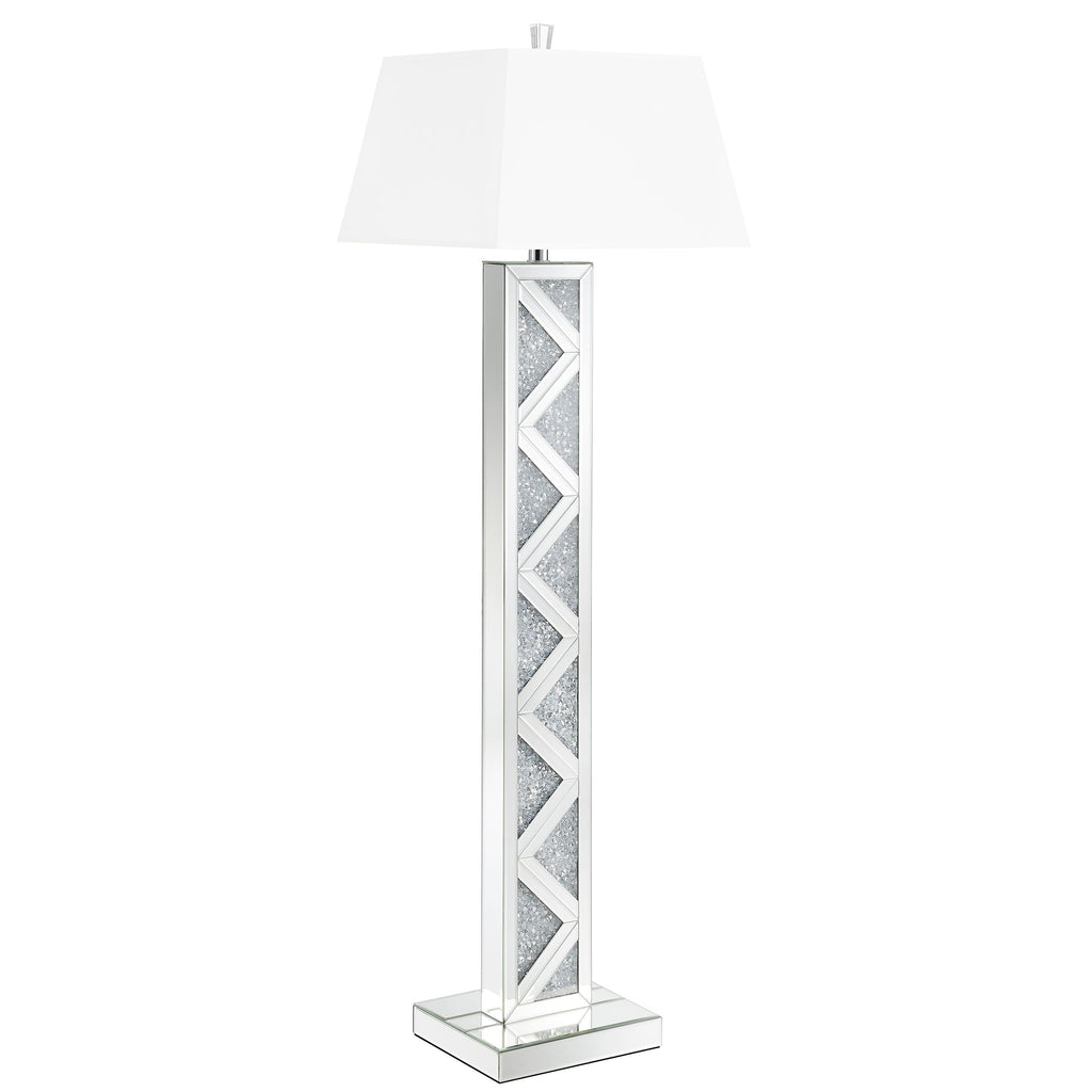 Open up your modern space with this floor lamp. Geometric design elements bring the contemporary nature of the piece to the forefront. Bright silver finish allows for easy matching with other pieces. Rectangular lampshade creates unique visual interest. Brightening up any contemporary or modern space is as easy as including this lamp.