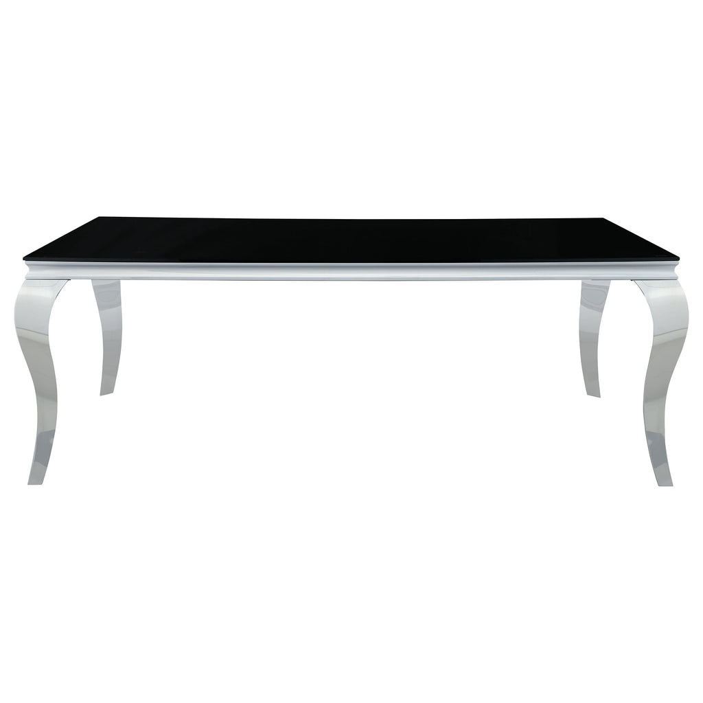 Immerse in sophistication with the table's stainless steel cabriole legs curving gracefully beneath the 12mm tempered glass top, enhanced by beveled edges