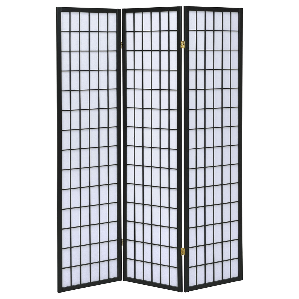 This three-panel screen serves a variety of purposes in your rec room or family room. Set it up as a divider to separate a private conversation from the group gathered to watch the big game. It makes for a simple aesthetic background piece by putting a small side table and chairs in front of it. Even set it behind a black or white sofa or love chair. Black frame and contrasting white fabric with block pattern complement a room with dark decor.
