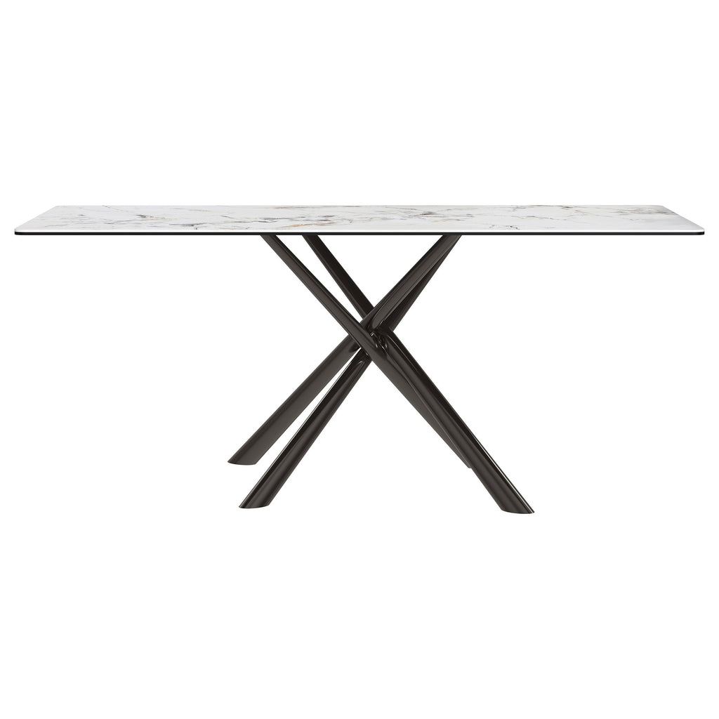 Gorgeous sintered stone brings depth and dimensionality to a modern rectangular dining table. A true centerpiece in your kitchen or dining room, it boasts an enchanting white mirage finish on its table top, offering multi-tonal allure with a hint of glam. The modern design includes a bold sculptural base that provides support with its starburst motif. The base receives a glossy black finish, offering a slick, sophisticated touch of sculpted elegance. Choose seasonal or timeless table linens and enjoy delicious meals with family and friends.