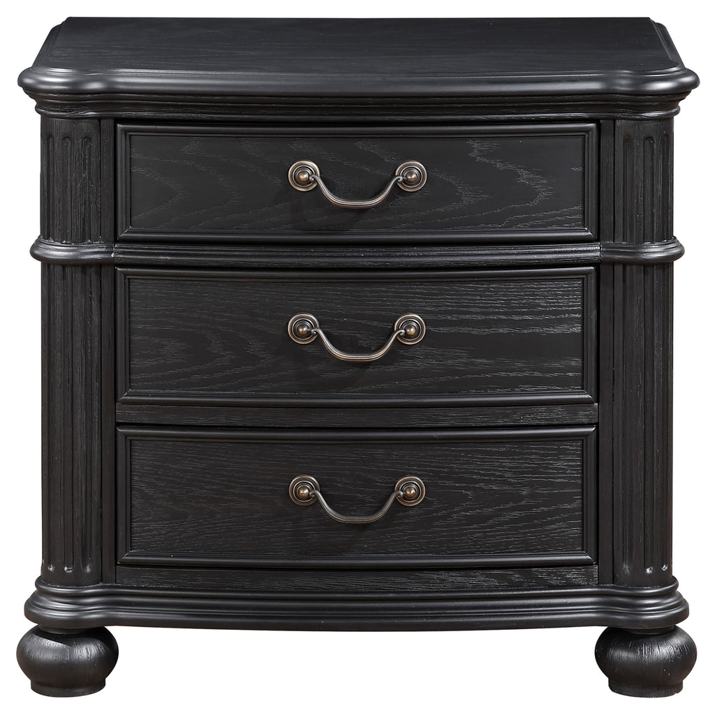 Discover the perfect blend of functionality and elegance with this nightstand, featuring three spacious drawers to keep your essentials organized. The top drawer, lined with soft felt, provides a gentle nest for your delicate items, while ingeniously designed grooves at the back allow for discreet charging cable access, keeping your devices powered and within reach. This nightstand, with its black finish and timeless hardware, is not only a storage solution but a sophisticated addition to your bedroom sanctuary.