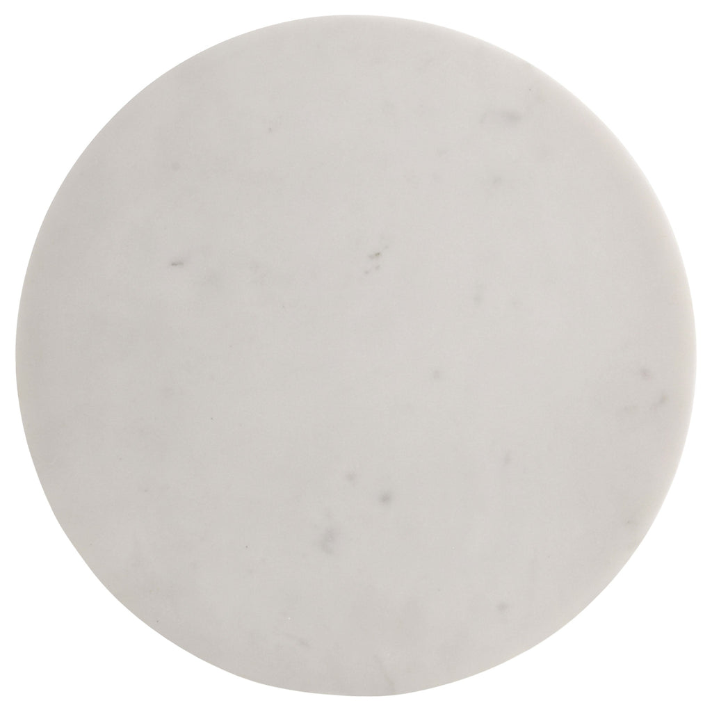 Upgrade timeless living style with a dark gray mango wood pedestal and round white marble top