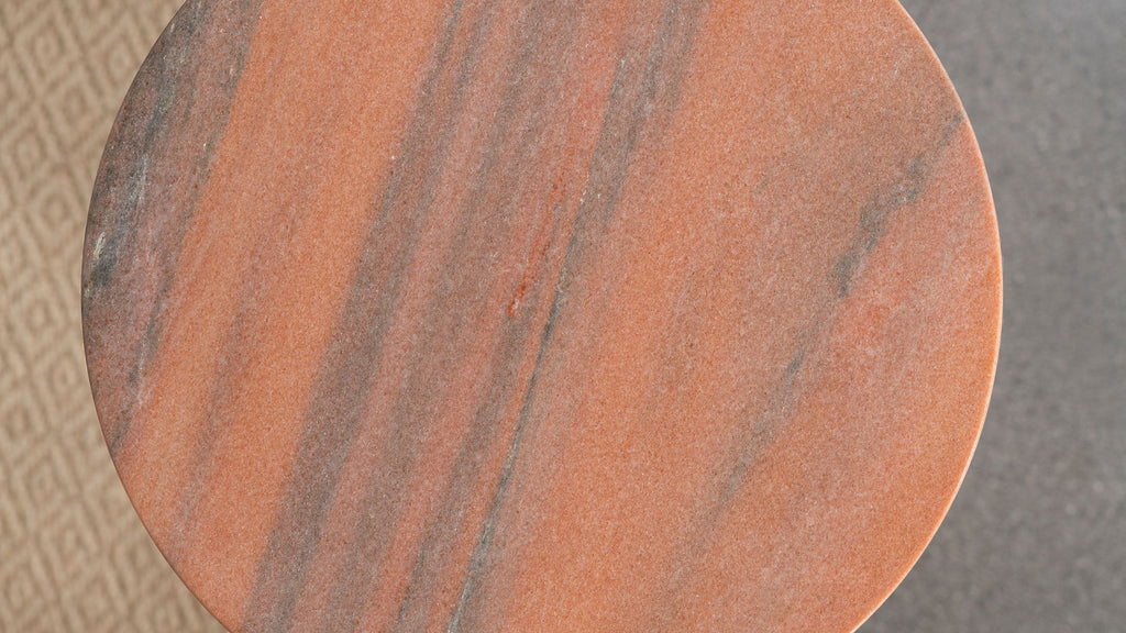 Gorgeous exotic ambiance bridges both natural and glam to keep your living space updated with a rich palette. The Colima side table blends rich, warm tones and offers an eye-catching silhouette to embellish your living room, bedroom, or entryway. A peace marble round tabletop shows fine detail with a grain effect that adds organic artistry. A gold metal iron frame and stylishly flared, exaggerated mango wood base work together to create a table that gets noticed. The compact size of this side table works to your advantage in a more compact space.