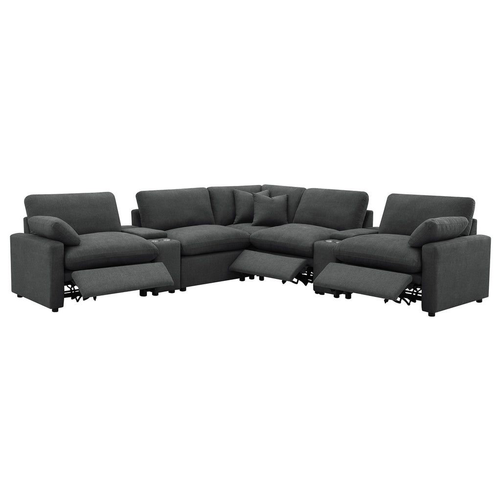 Transform your living space with the versatile 5-piece modular sectional, designed to offer a perfect blend of comfort, style, and customization. This sectional features three power reclining pieces and two non-reclining pieces, allowing you to create your ideal seating environment. With the option to add additional power or non-power armless chairs, you can customize the layout to suit your room and preferences. Enjoy the plush comfort of premium down-like filled cushions and a sleek, modern design that enhances any decor. Experience the ultimate in relaxation with the power reclining pieces, featuring a 4-inch wall-hugging design for full recline without needing excessive space.