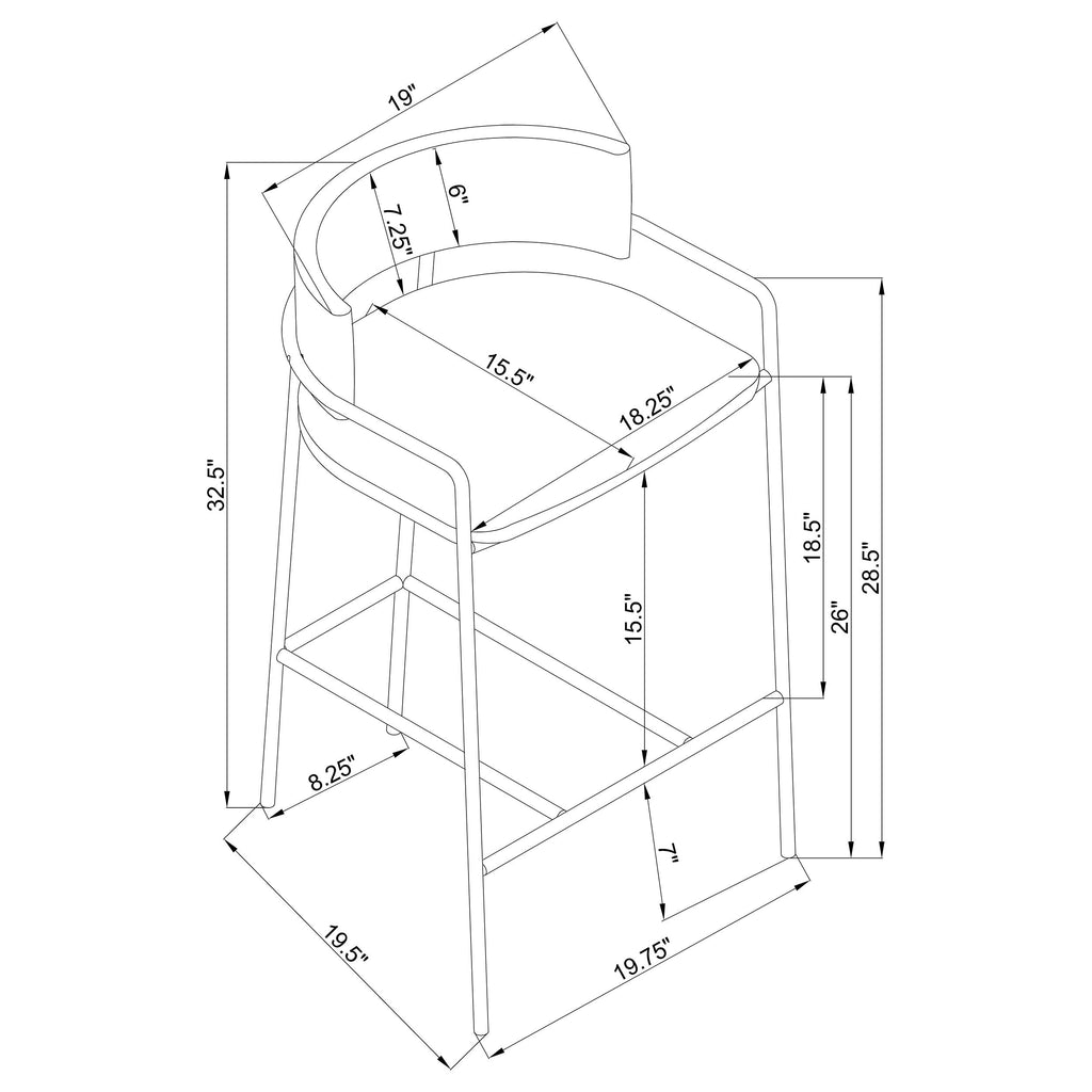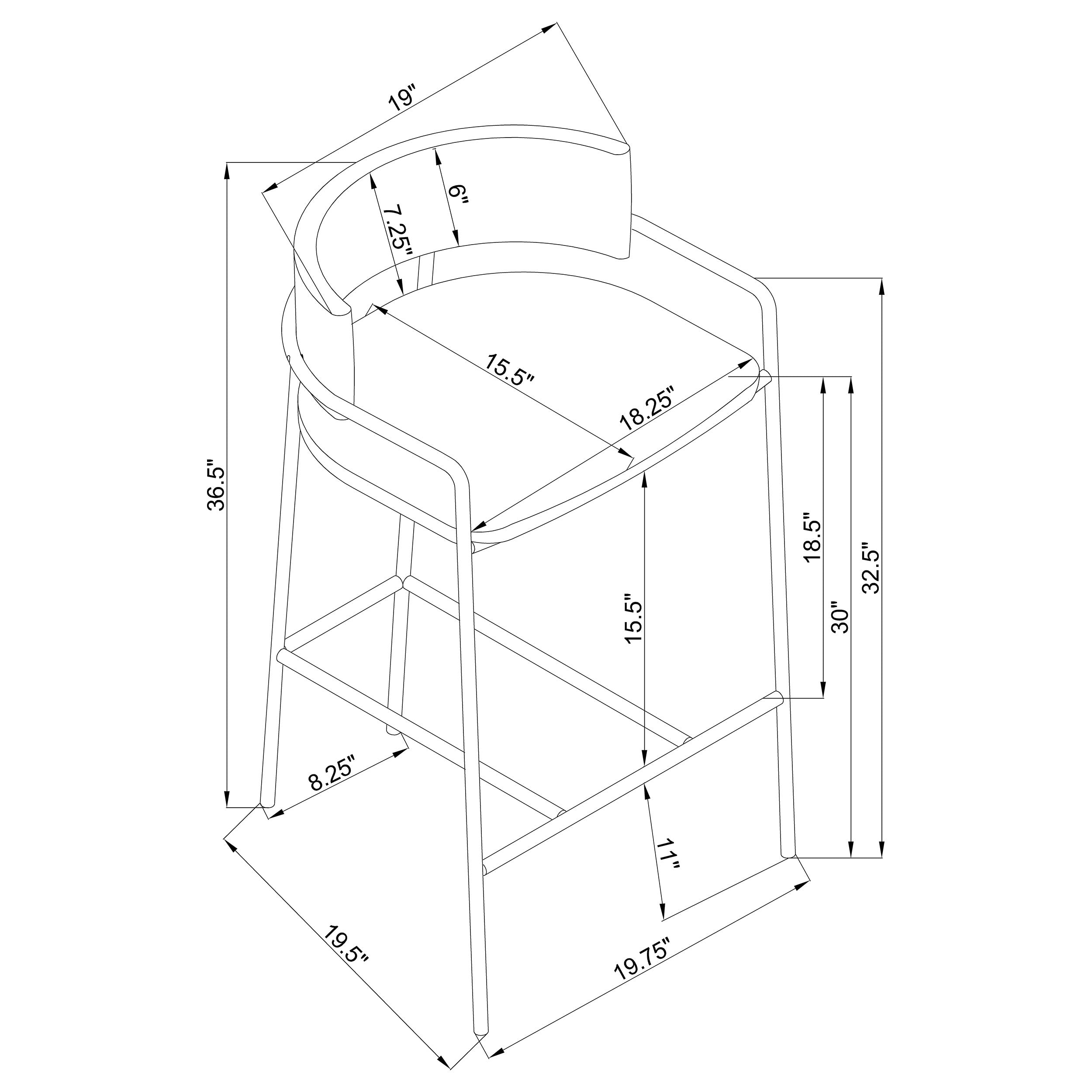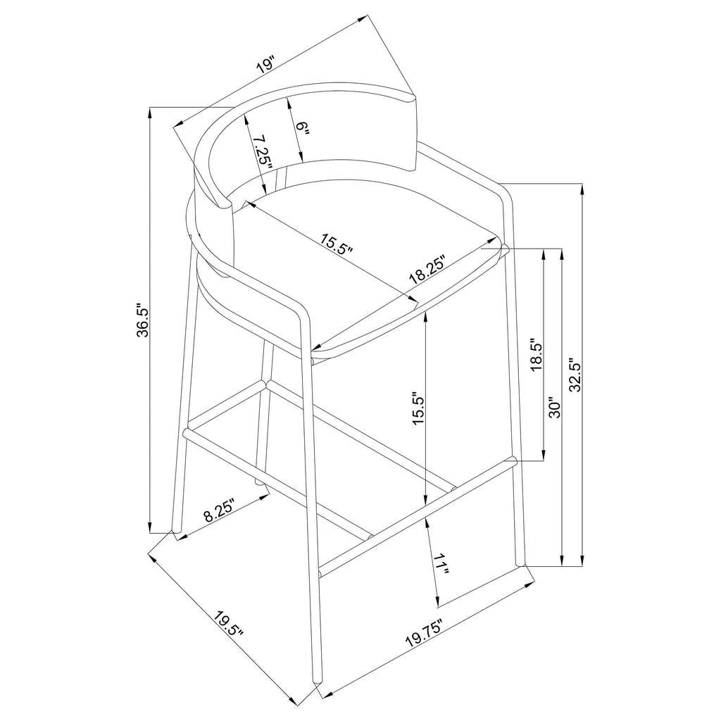 Bar Stool: Width: 19.75, Depth: 19.50, Height: 36.50, Weight: 12.10