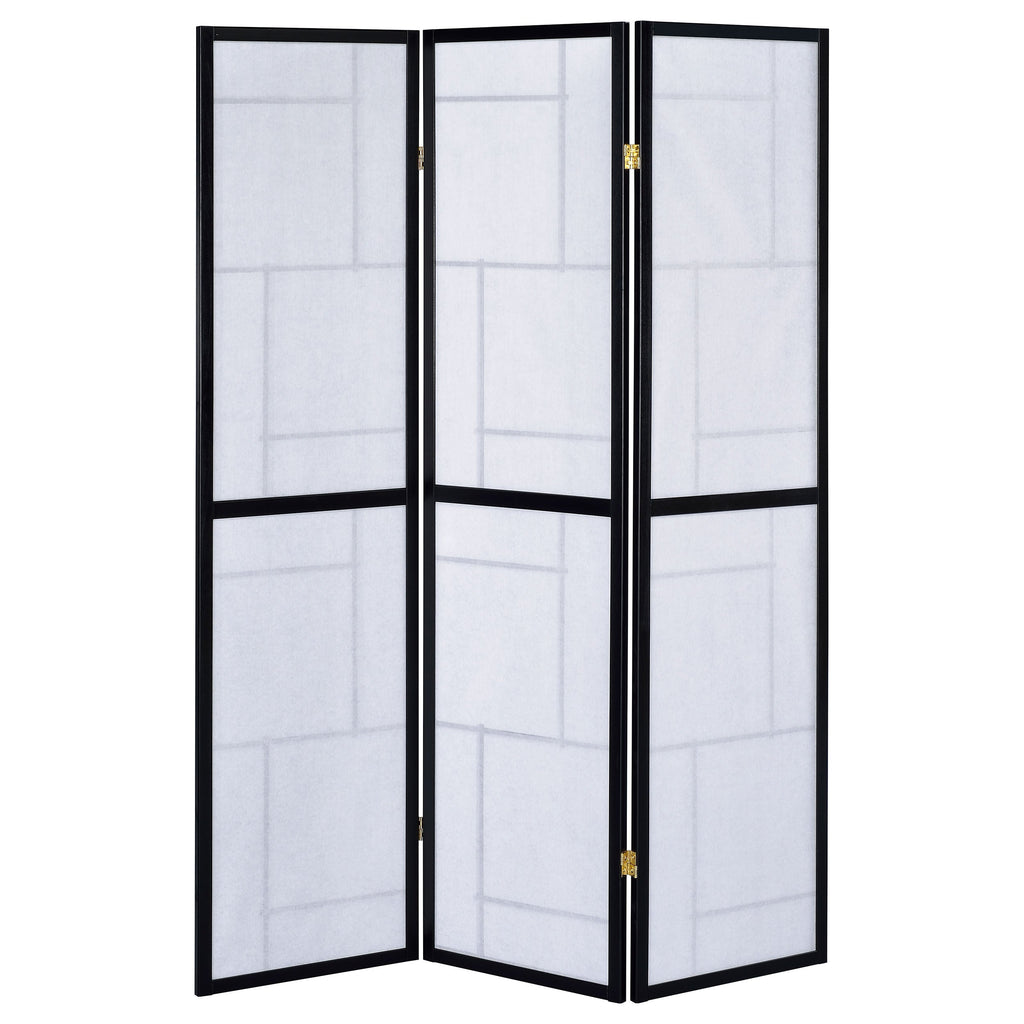Infuse modern style in a contemporary room. With just a hint of mid-century styling, this three-panel folding screen offers a standout effect. Contrasting white and black lines form a geometric pattern in each panel. A black frame offers a delightful contrast. Adjust panel positions to create a room divider or an impressive decor piece.