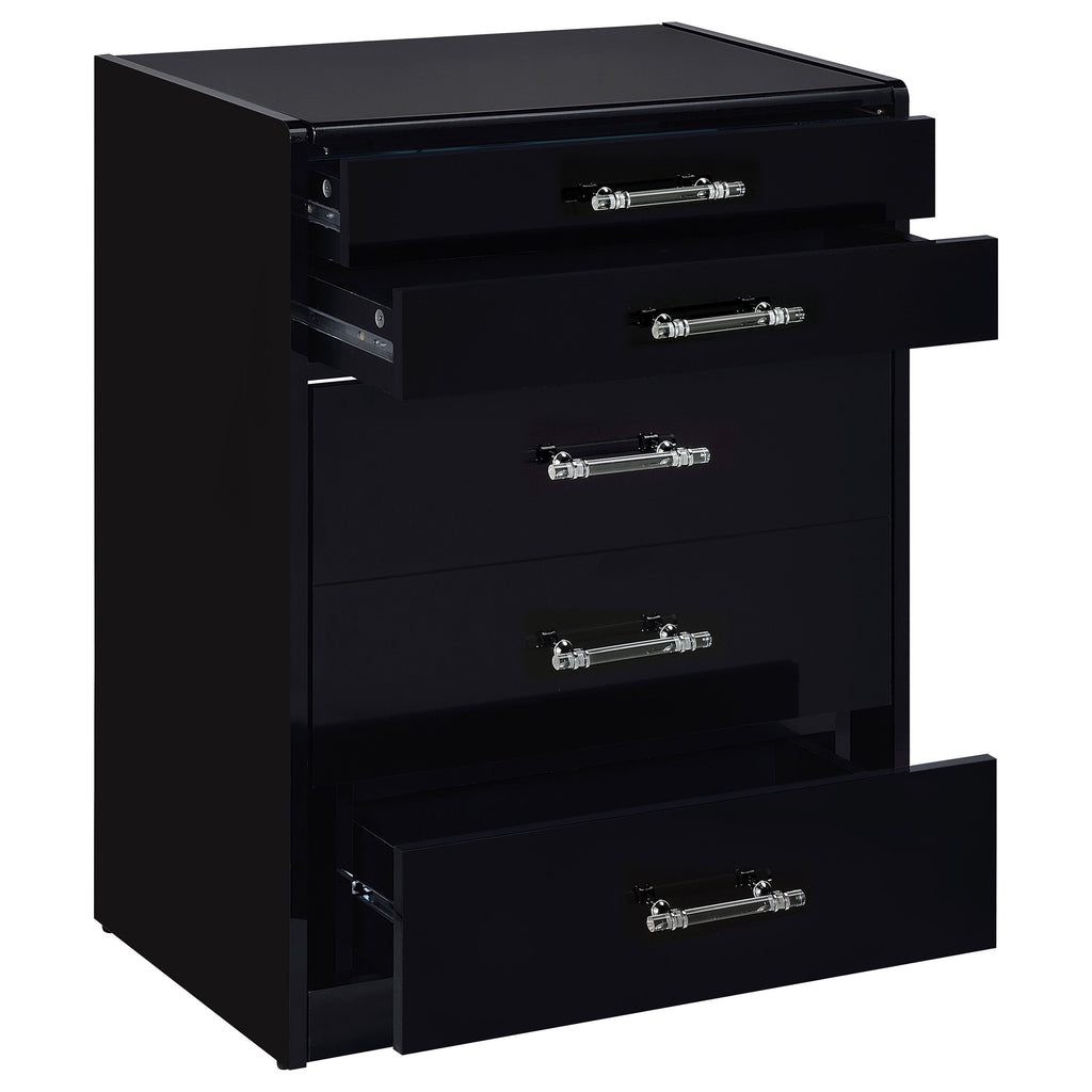 Clear acrylic with chrome pull handles add a modern, elegant touch