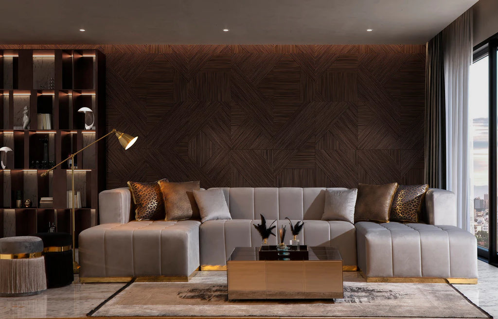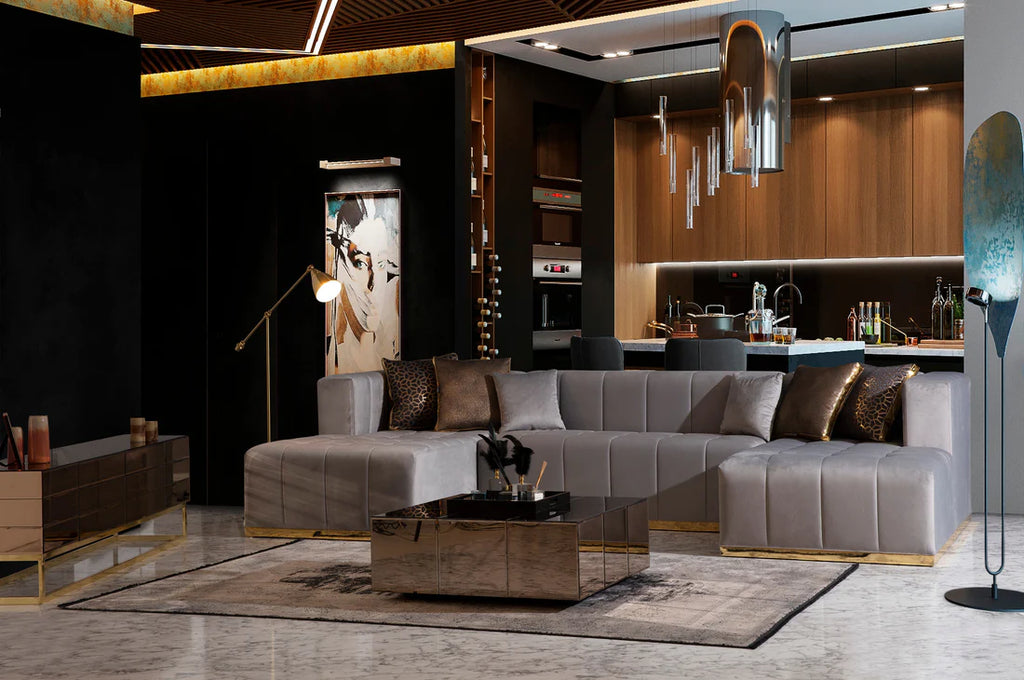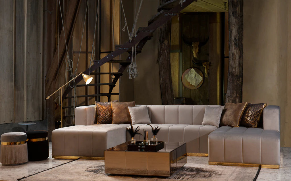 Introducing Elisha, double chaise velvet sectional, a masterpiece of modern elegance and comfort. The velvet upholstery of this minimal sectional is both soft and durable. Featuring channel tufting, this sectional exudes a sense of luxury and refinement. To further elevate your comfort, we have included six designer pillows in this modern sectional.