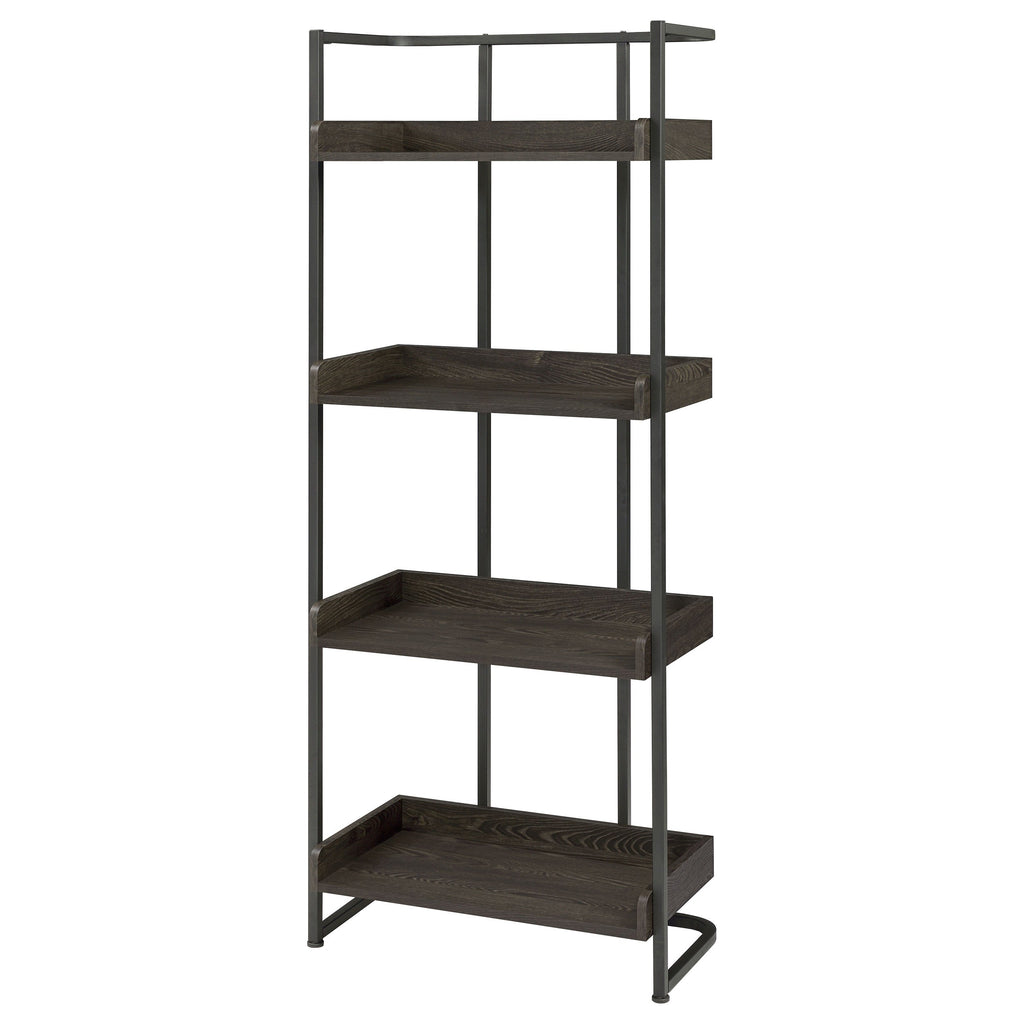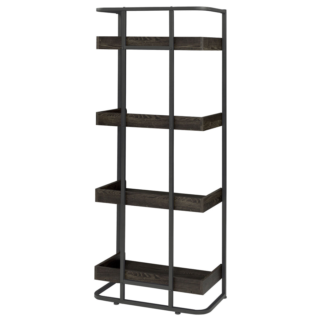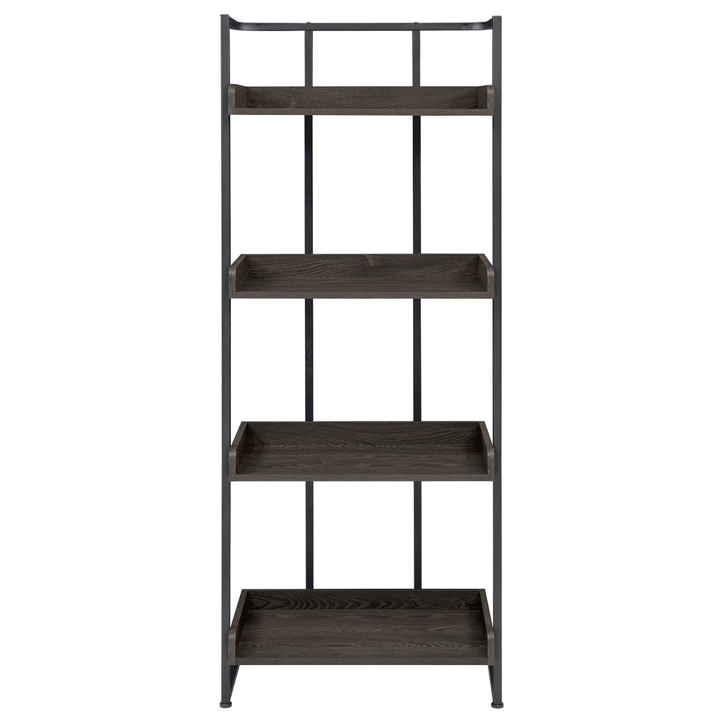 A steel bookcase is bound to steal your heart with its stylish appearance. Four roomy shelves allow for displaying your favorite novels. With its open back design, you'll have no trouble finding the ideal spot in your modern office. Its construction ensures a durable and long-lasting upgrade. This piece is supported on a rounded open base.