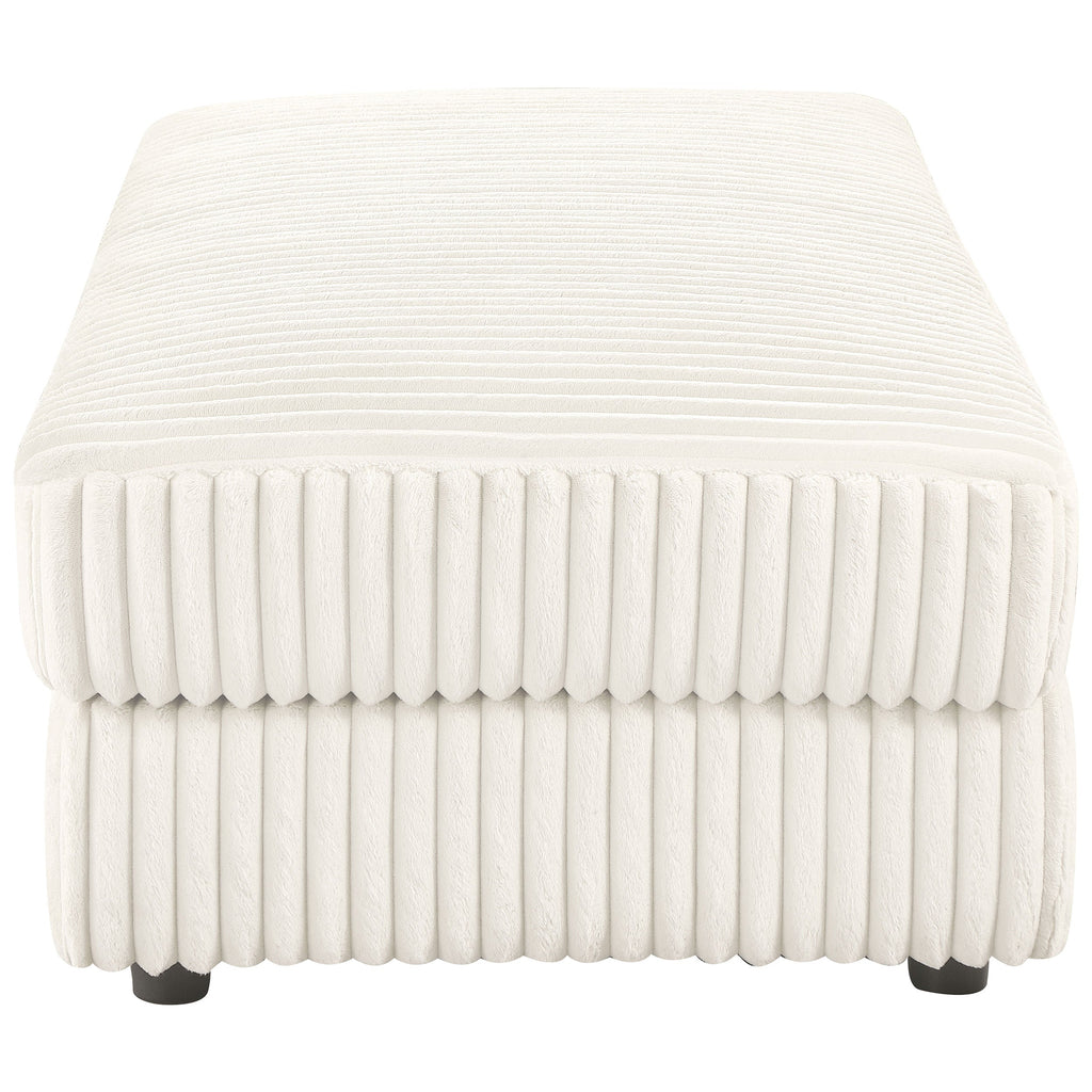 Complete your living space with the versatile and functional storage ottoman, designed to complement your sectional sofa set. Upholstered in luxurious ivory wide corduroy, this ottoman offers an exceptionally soft and inviting texture, mimicking the feel of fur. The storage ottoman provides convenient hidden storage for blankets, pillows, or other items, making it a practical addition to any room. It can also serve as extra seating or leg support for reclining, adding to the overall comfort and functionality of your living area. Perfectly designed to match your sectional, this ottoman enhances both style and convenience in your home.