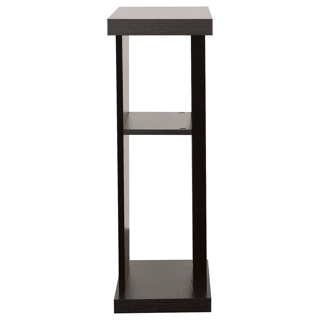 Angular in shape, this console table offers a dynamic design meant to impress. Dress up a transitional room with a space for displaying books, decor, or potted greenery. Luscious cappuccino offers a bold, dynamic finish. An eye-catching slanted silhouette creates a visual treat. Add this console to a central living space or an entryway.