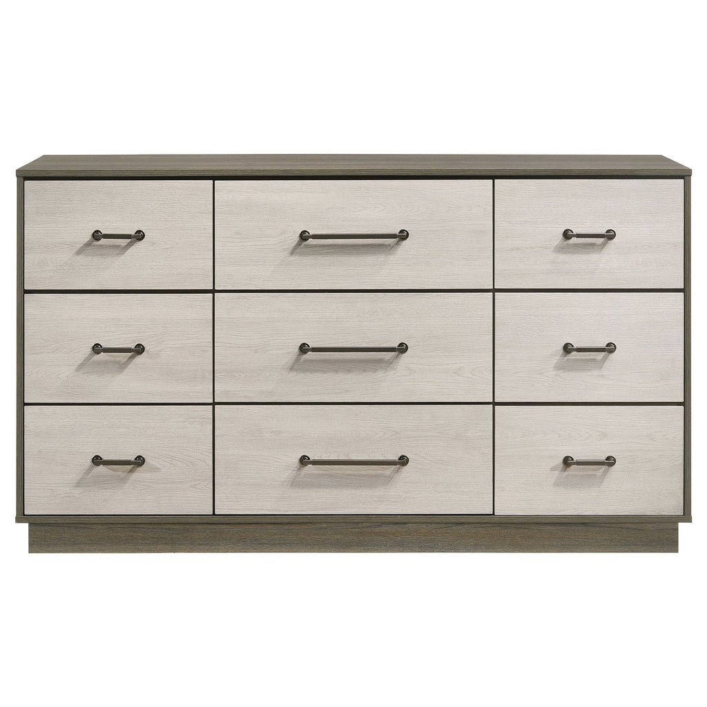 Nine-drawer dresser with a contemporary two-tone melamine design