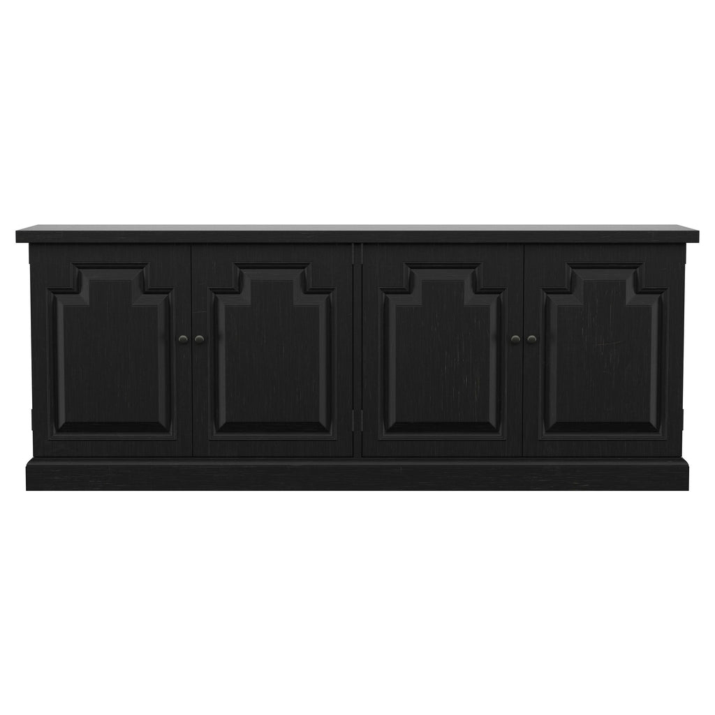 This four-door sideboard offers a refined blend of storage and style, perfect for dining and entertaining spaces. Crafted from pine, plywood, and pine veneer, it features a beautifully planked top that enhances its rustic charm. Raised panel doors lend a classic, sophisticated appeal, while the spacious interior includes two nested drawers with self-closing metal slides for effortless organization. This versatile piece functions beautifully as a server, providing ample space for dishware and linens. With its elegant craftsmanship, it also serves as a buffet, adding both convenience and timeless appeal to any home.