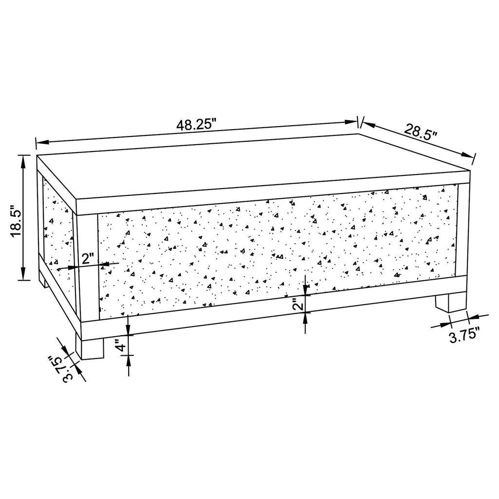 Rectangular mirrored coffee table with glam appeal