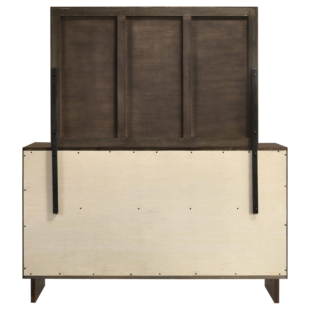Clean, straightforward design details bring stylish flair to a modern six-drawer dresser and mirror