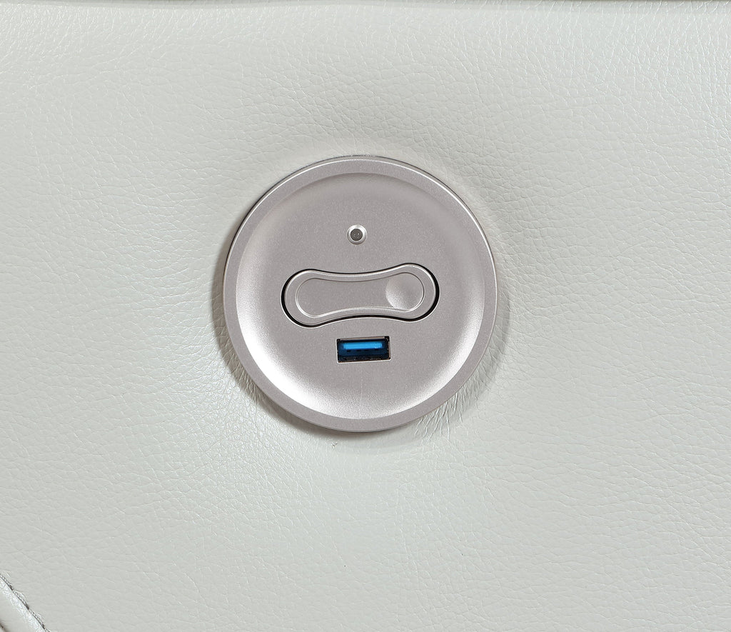 Contemporary elegance plays out in a clean, modern design as the power recliner delivers beauty and comfort to a space reserved for easy entertaining and relaxing. Dove grey leatherette upholstery covers wood framing to provide a sturdy build, embellished with plump foam fill in a tall, attached back cushion and supportive seat cushion. Subtle tufting cradles body positioning, aided in luxurious comfort by power reclining at the touch of a button on a switch panel with a handy USB port. The versatility of a clean dove grey finish joins a delightfully simple yet elegant style motif to make this power recliner a hit in any modern space. This power recliner is all that's needed for a relaxing day or evening.