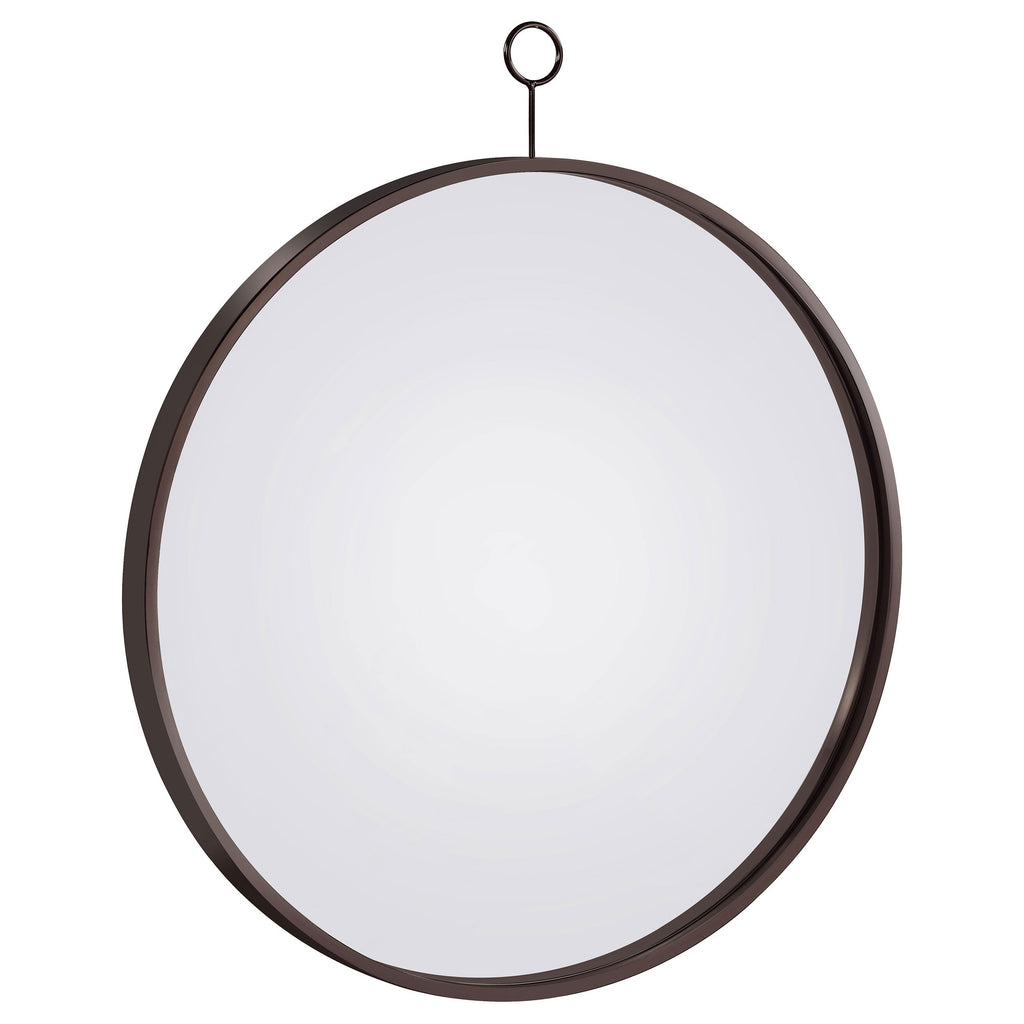Understated elegance emerges in this round mirror. Perfect for a modern farmhouse style space or home, this circular mirror boasts clean lines with a thin frame in a deep black nickel finish that delicately accentuates the silhouette of this charming wall decor. Attached at the top is a metal loop hanger, inviting you to hang this mirror in an exposed, industrial method. Mount it from an attractive hook or secure it with a rope or ribbon for a charming touch. In addition, this rustic-inspired mirror makes a lovely addition to an entryway foyer as well as a compact bathroom.