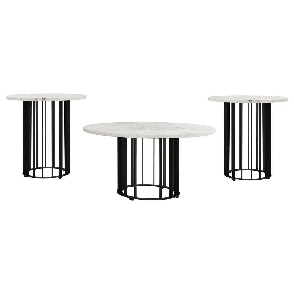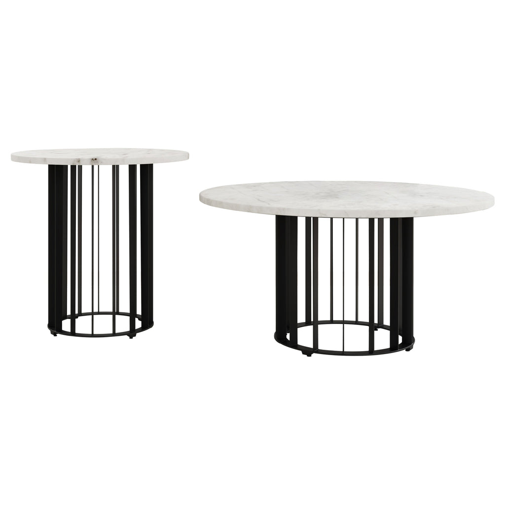 This coffee table set blends modern design with high-end materials, featuring genuine marble tops and sturdy iron bases. The round coffee table and matching end table share an open vertical rod design for a striking yet minimalist aesthetic. The spacious marble surfaces offer ample space for serving, display, or everyday use. The durable iron construction ensures stability, making this occasional table set a stylish and functional addition to any living space.